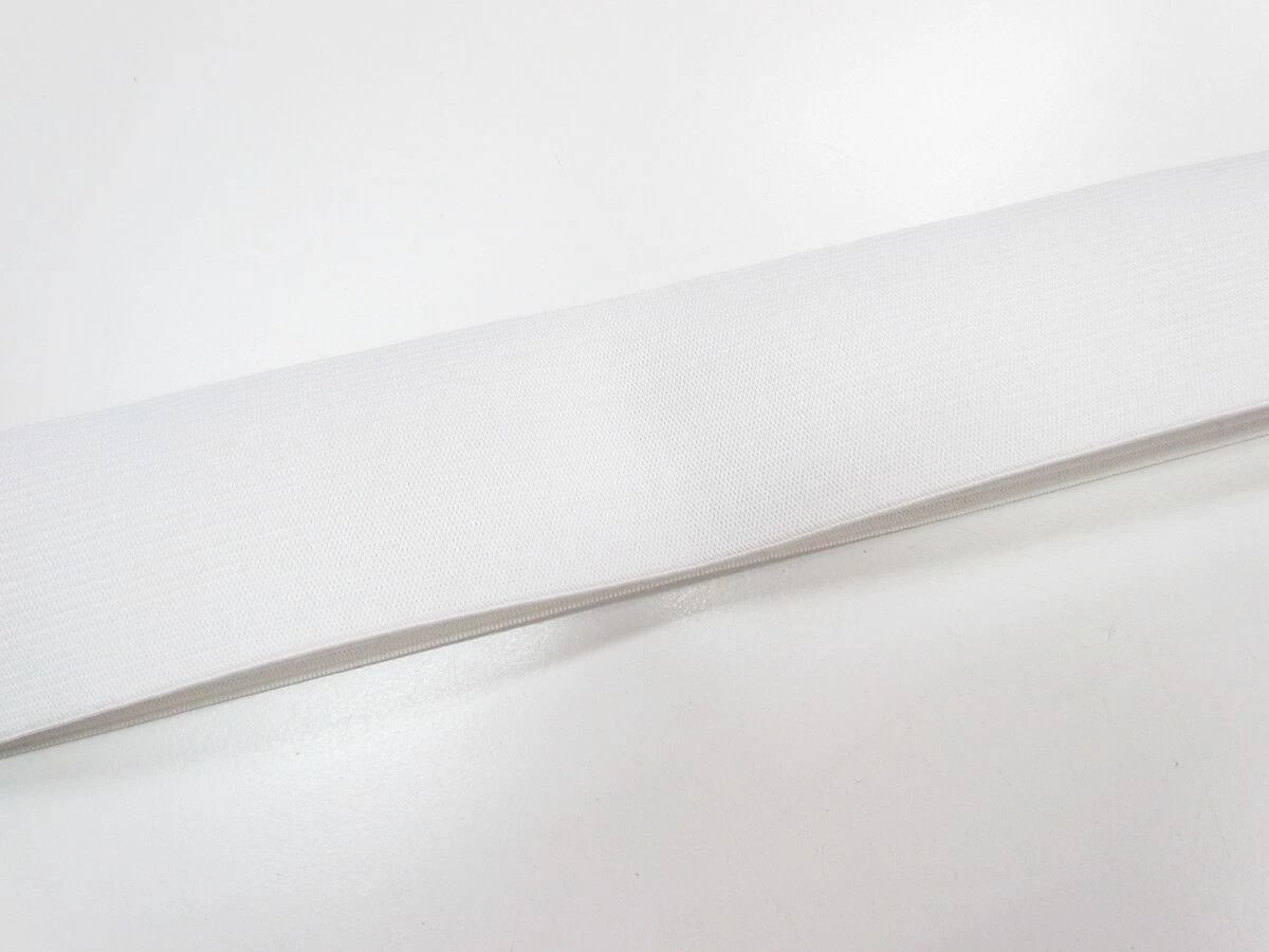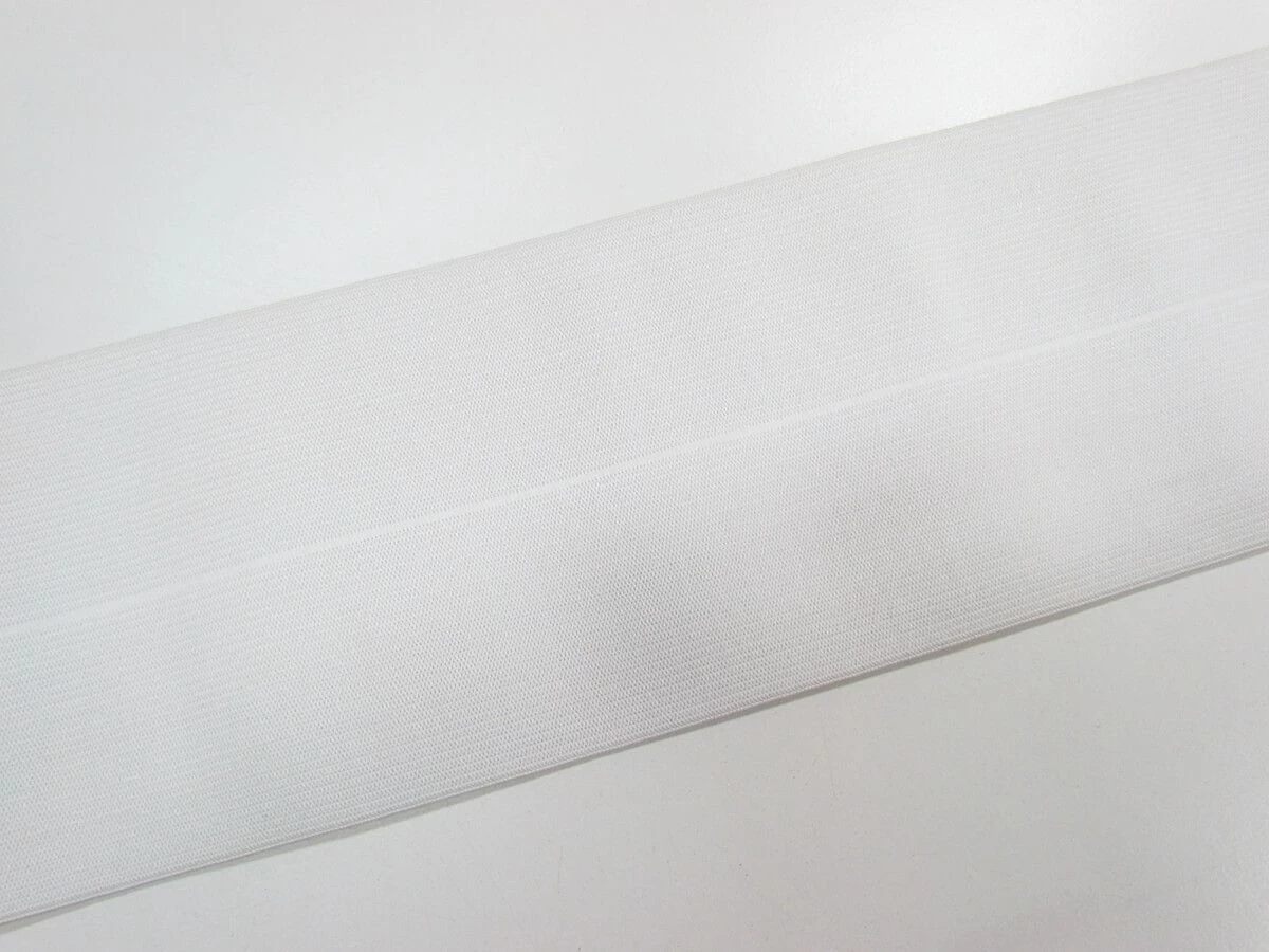 This white fold over elastic is a heavier weight elastic with good structure and great stretch and return. Ths fold over elastic has a total width of 100mm, and when folded in hlaf measures 50mm. This elastic is ideal for using in waistbands and other apparel, costuming and craft applications.