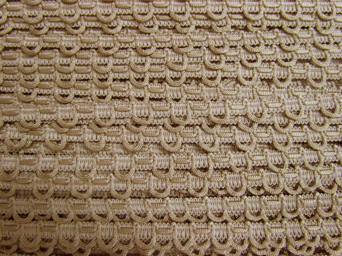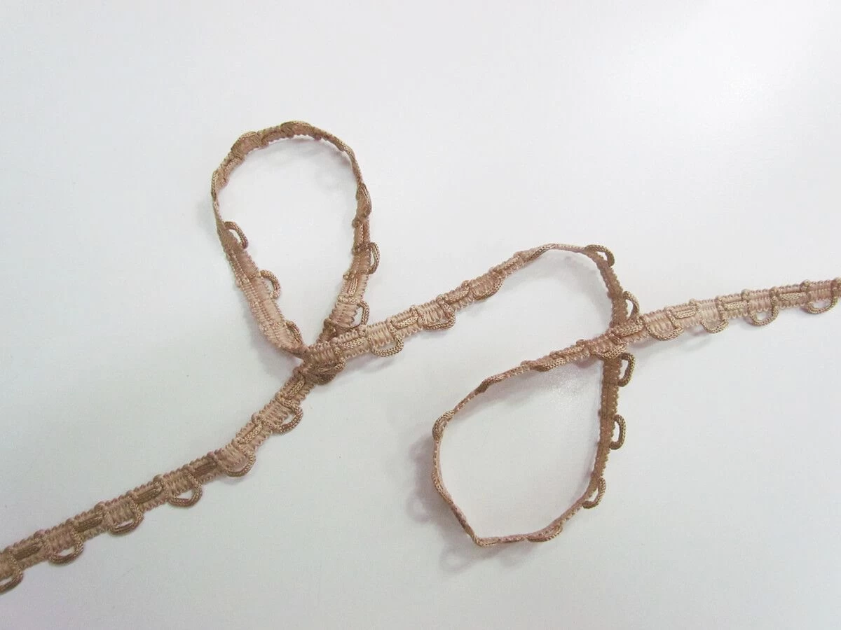 This is a tape trim, with a decorative loop detail. The full width of the trim is 12mm. This trim is useful for garments, formal wear and couture. The loops on this trim are not elastic, but rather than just decorative, could be attached to a garment and the loops used also as button holes. The loops are 4mm wide.