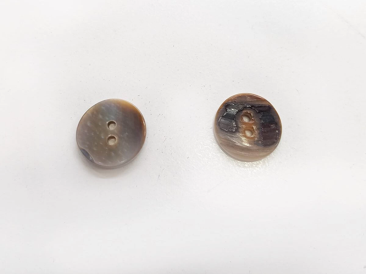 This button is approximately 15 mm in width. It is a shell material and each button is unique. This is 2 hole type, sew on button. This button is suitable for use as a fastener, on new garments or as a replacement on old garments. This button is also suitable for craft uses, or for decorative uses.