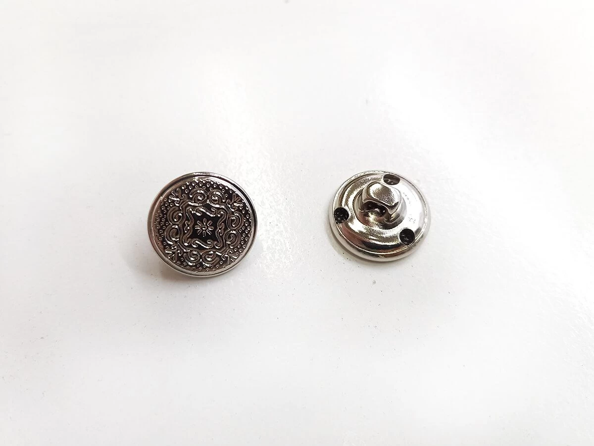 This button is approximately 15 mm in width. This is a shank back type, sew on button. This button is suitable for use as a fastener, on new garments or as a replacement on old garments. This button is also suitable for craft uses, or for decorative uses.