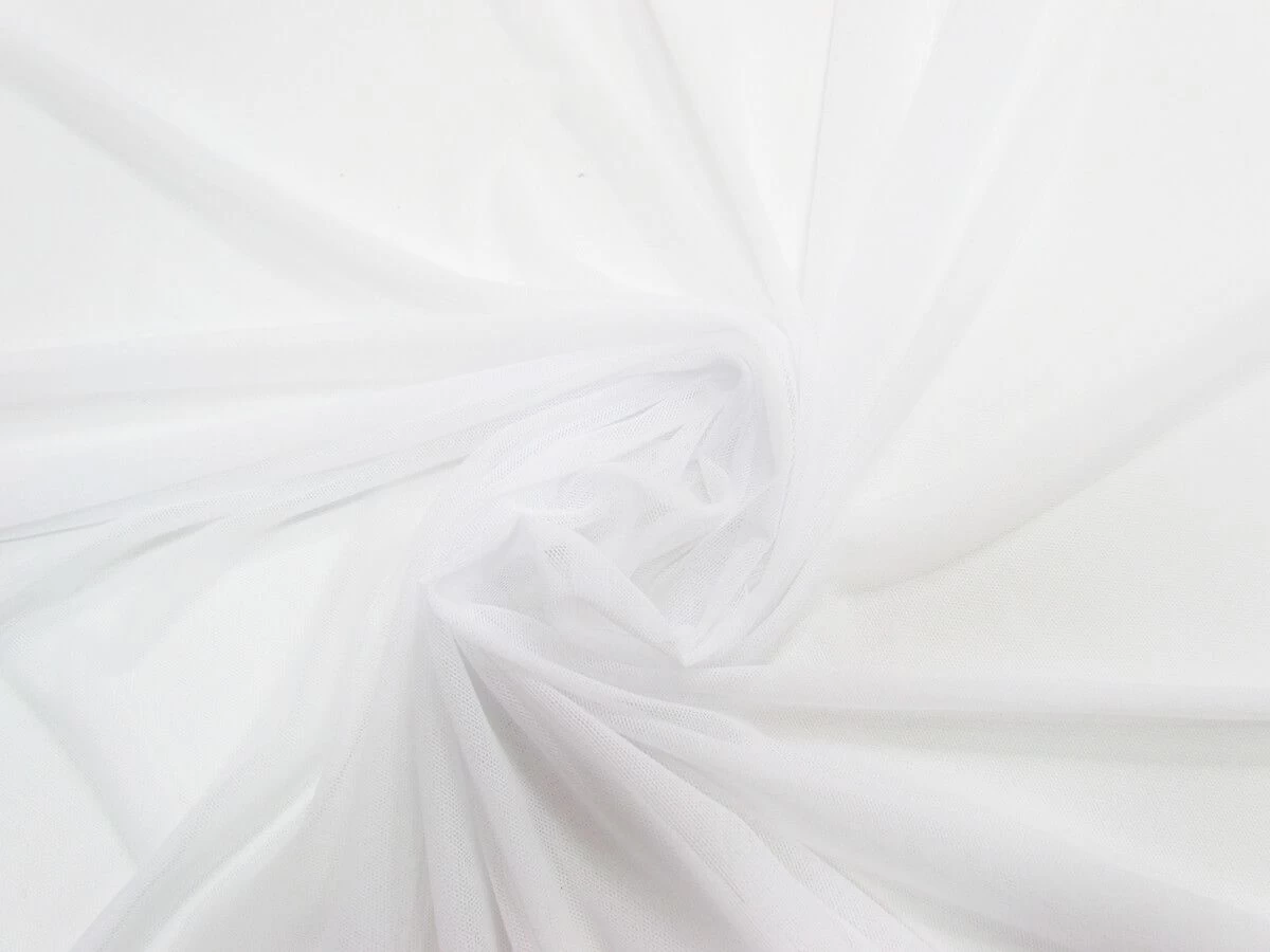 This plain white 2-way stretch mesh fabric is lovely and lightweight. This mesh fabric has a good degree of stretch along both the weft and the warp of the fabric. Suitable for fashion, dance, sport as well as tops, kaftans, wraps, pool side attire and other fashion garments.