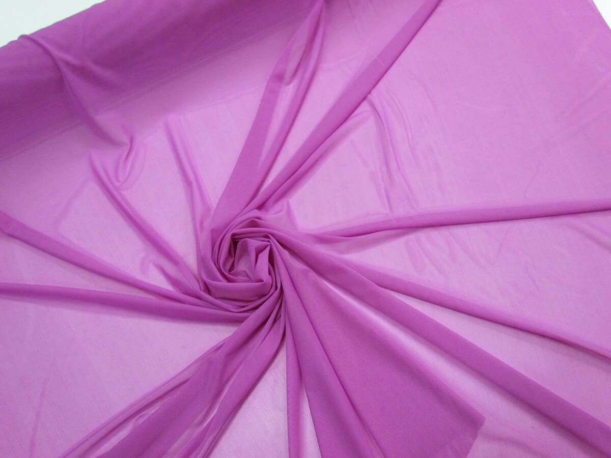 This plain 2-way stretch mesh fabric is lightweight, with a softly textured feel. This mesh fabric has stretch along both the weft and the warp of the fabric. Suitable for fashion, dance, sport garments that require good stretch hand movement, with a sheer mesh look.