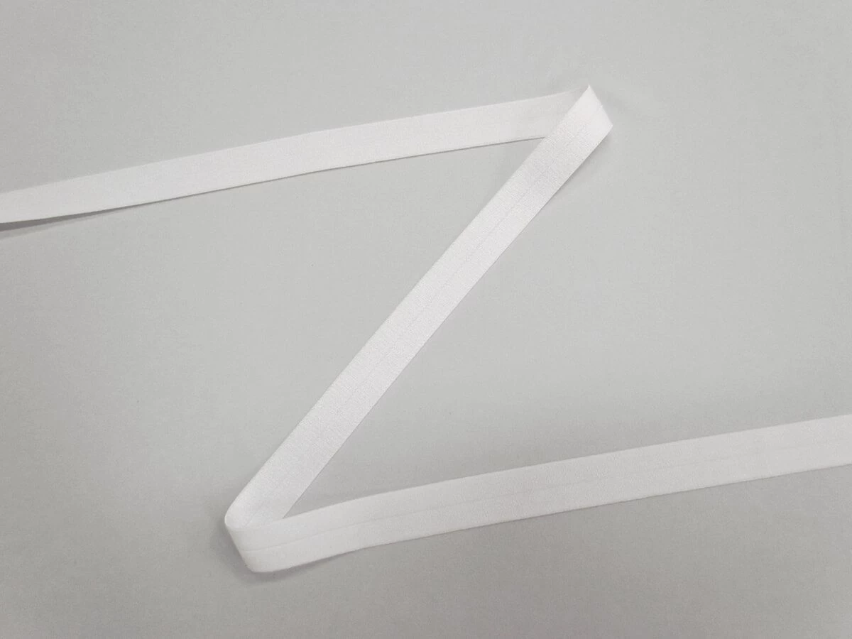 This mid weight fold over elastic has a great deal of stretch and return and is ideal for using in lingerie or other similar applications as a light weight elastic. This elastic measures 20mm when unfolded and 10mm when folded, with one side being more matte and the other being slightly lustrous.
