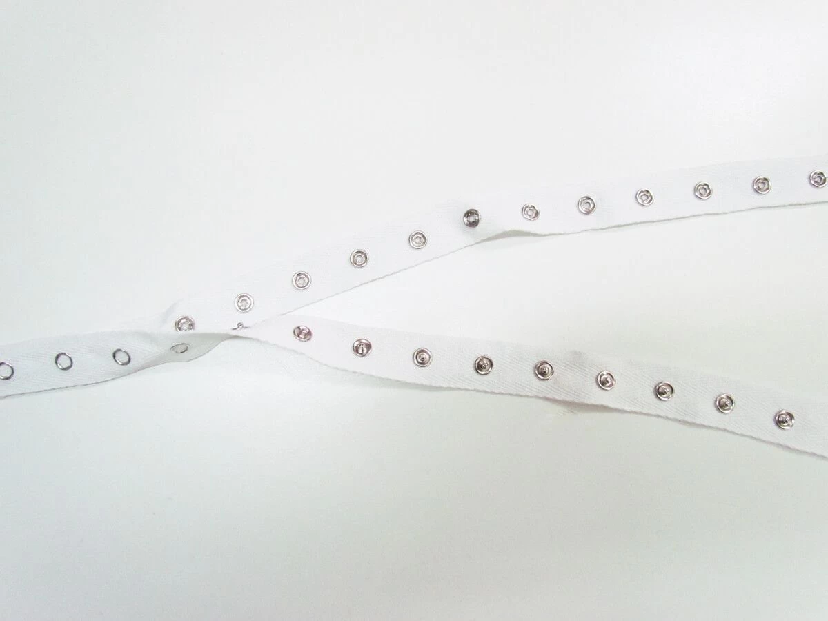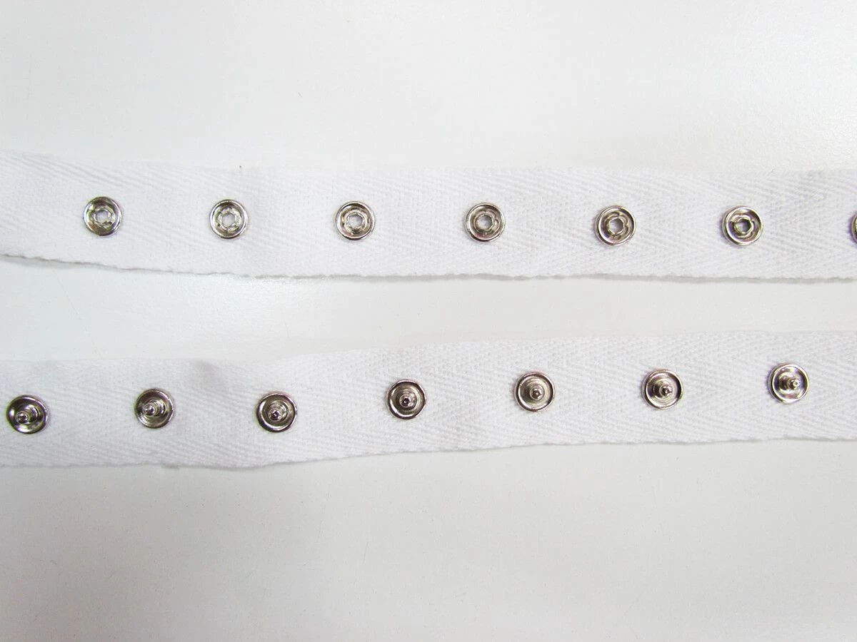 This is two sides of cotton tape, with metal snap fasteners. Each side has either the A or the B part go the snap closure, and the tape is sold as a pair. The tape is a herringbone weave cotton tape, that will be durable and flexible. This tape is useful for garments, crafts, accessories, bags, and homewares.