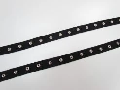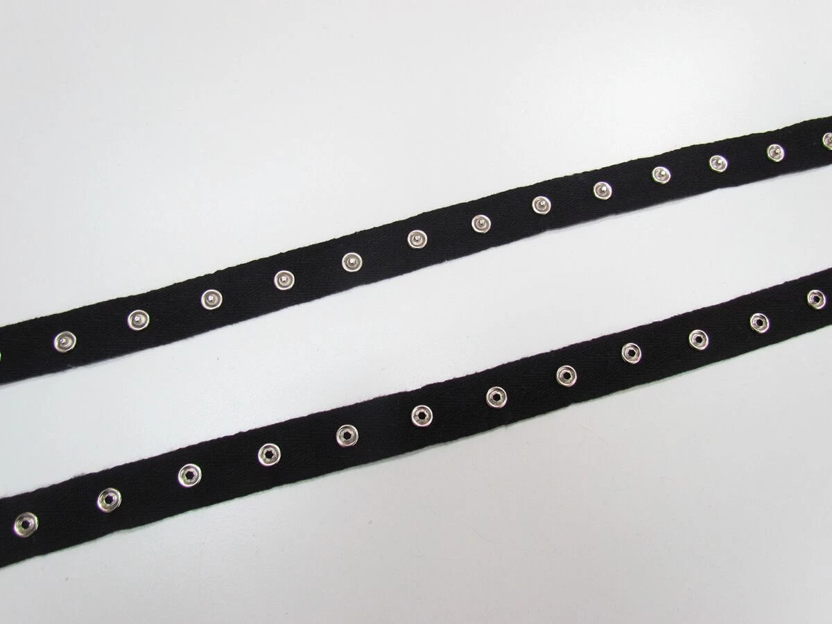 This press stuf trim is comprised of two pieces of cotton tape with one side of the press stud on each, when ordered, both sides of the tape are included. The tape measures approximately 20mm in width.