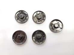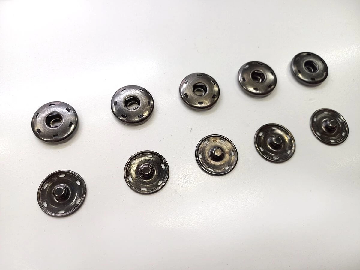 These heavy duty press studs are approximately 24mm diameter. They are a rustic black colour.