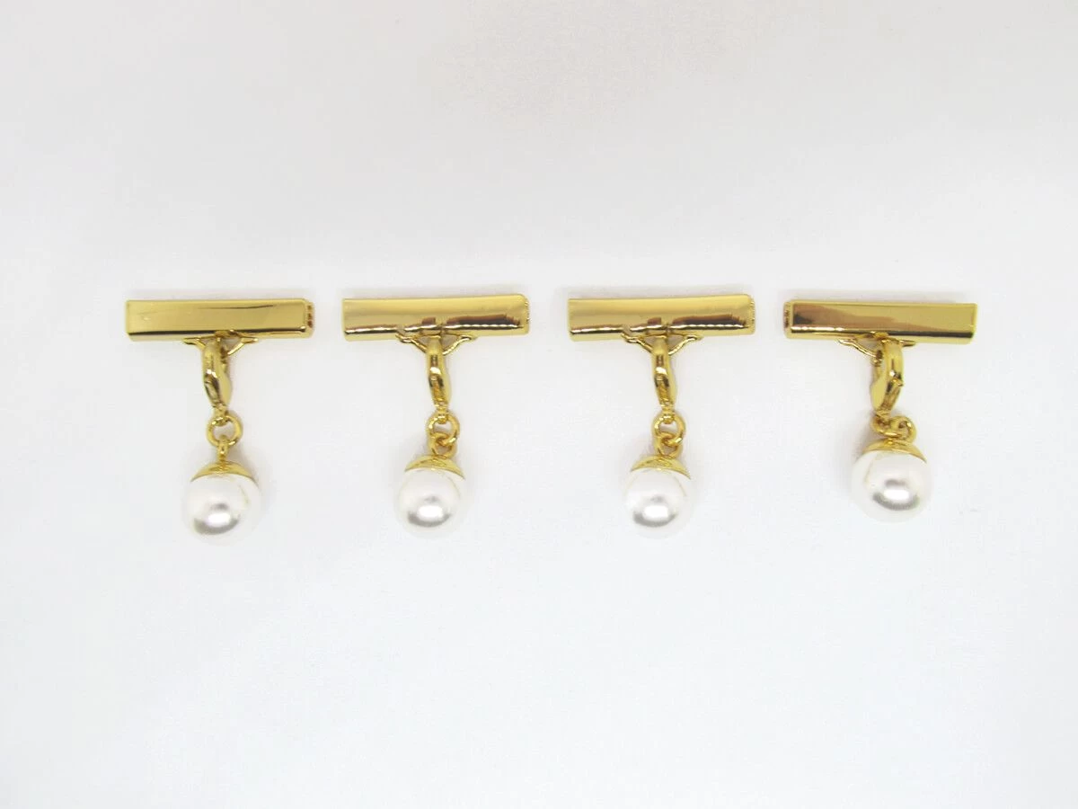These luxe gold webbing end crimps come in a pack of four and have small teeth so when they are crimped on to the end of a piece of webbing they stay in place securely. These webbing crimps have pearl look beads with a gold cap attached with a latch hook to the end of the crimp for an added detail, however these could be removed if desired and swapped for another charm. These webbing crimps measure 25mm in width and work for webbing of that size. These crimps are ideal for use in various craft and apparel applications to finish off webbing or a similar trim/material in a neat way.