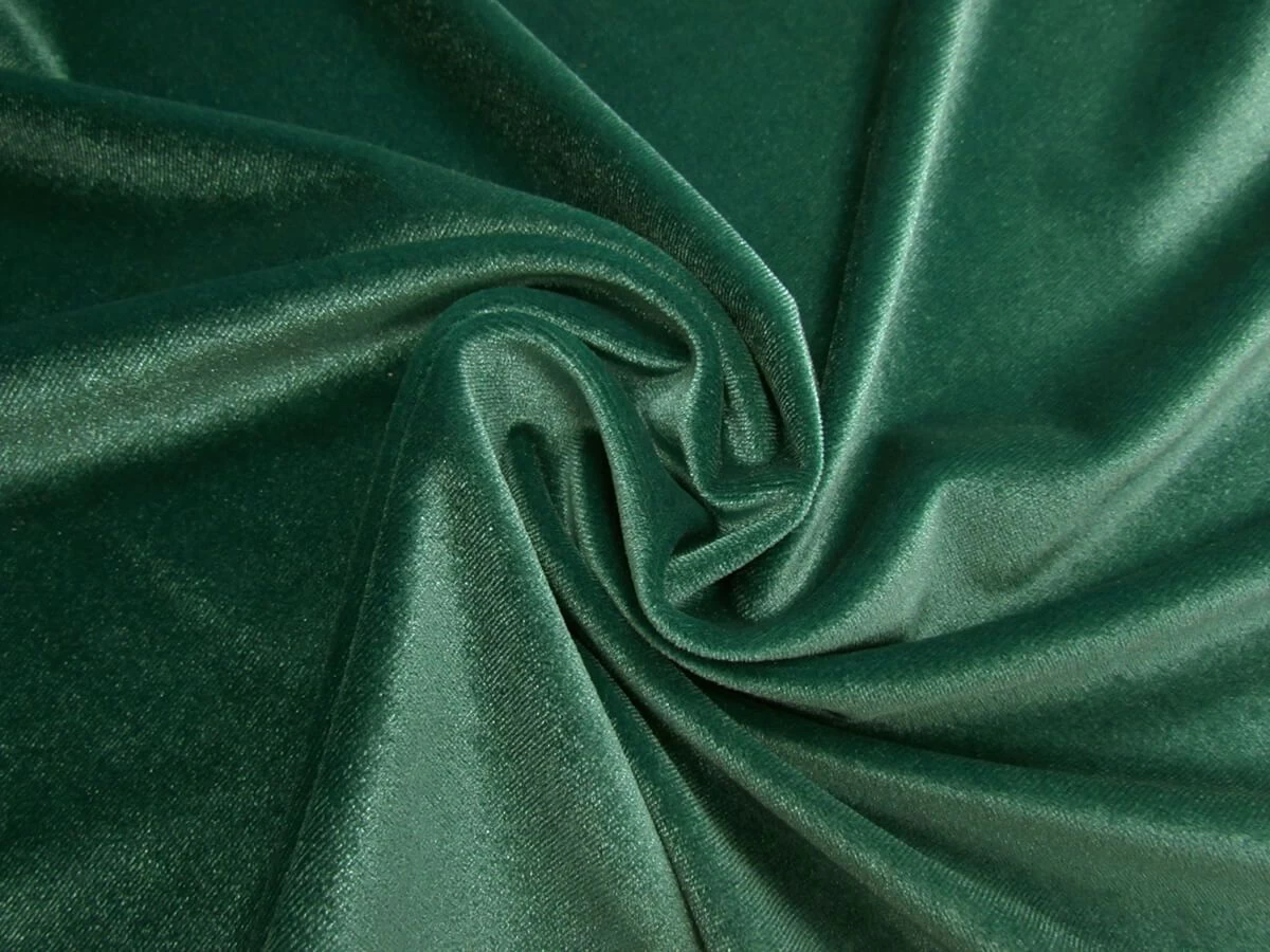 This gorgeous green stretch velvet fabric stretches very well along the weft of the fabric and moderately along the warp. Catches the light wonderfully, would be gorgeous as gowns, dresses, as well as tops and with it being a 2 way stretch fabric could also be used for dance, theatrical, leotards etc. As a stock service fabric, this fabric can be reordered to fill large order and ongoing supply