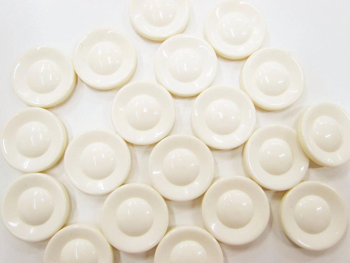 This fashion button is a cream colour, and is approximately 3.5 cm wide. This is a flat type button. Use this button as a fashionable finish to your garments, crafts, and accessories.