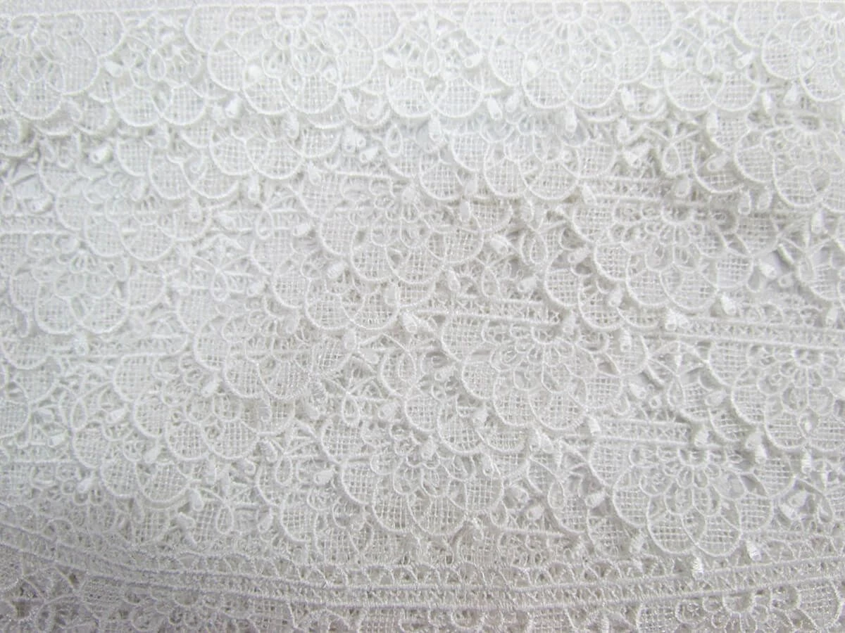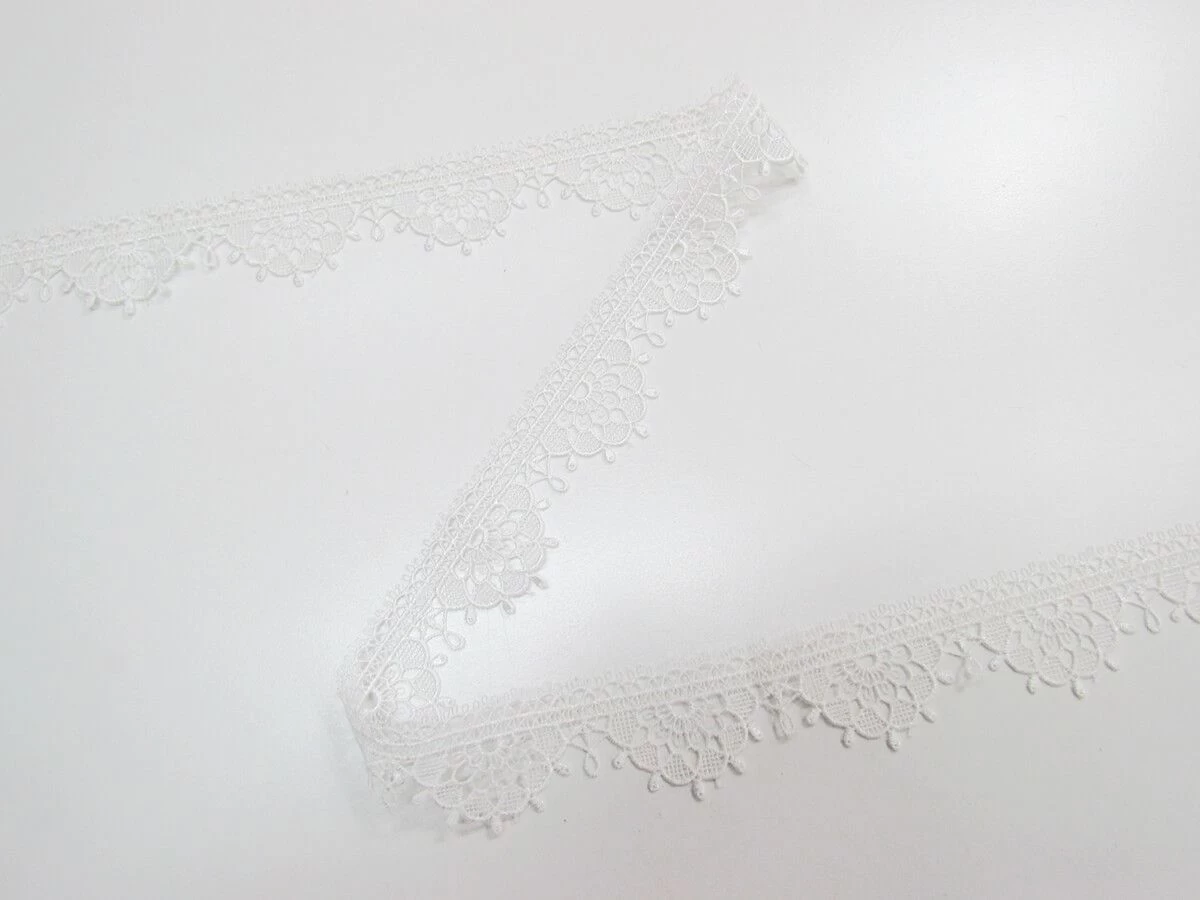 This detailed lace trim has a pretty floral scallop that measures approximately 38mm in width. This floral lace trim is a perfect trim to add a special touch to various apparel and costuming applications.