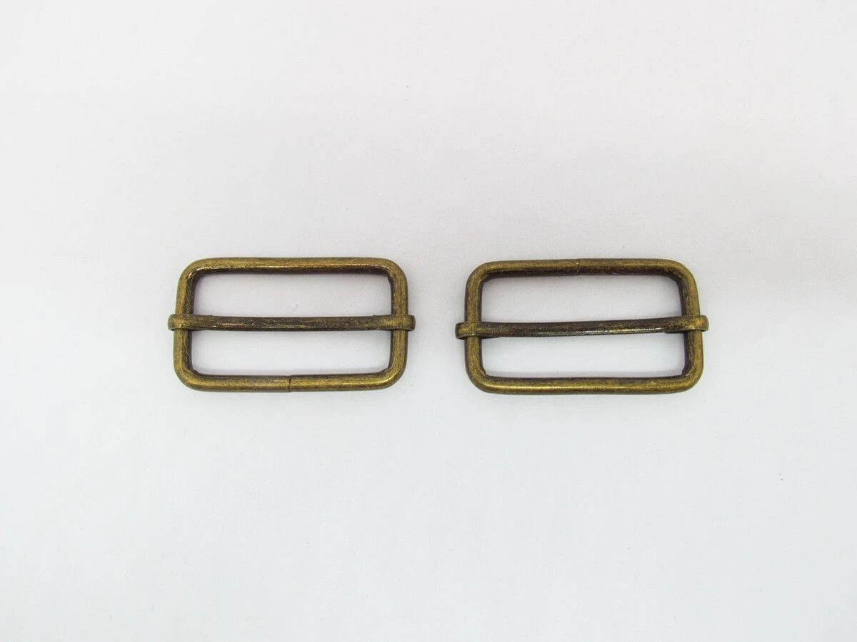 These aged brass sliders come in a pack of two and have an internal measurement of 38mm and fits tape or webbing of that width. These sliders are great for use in straps and other craft and accessory applications.