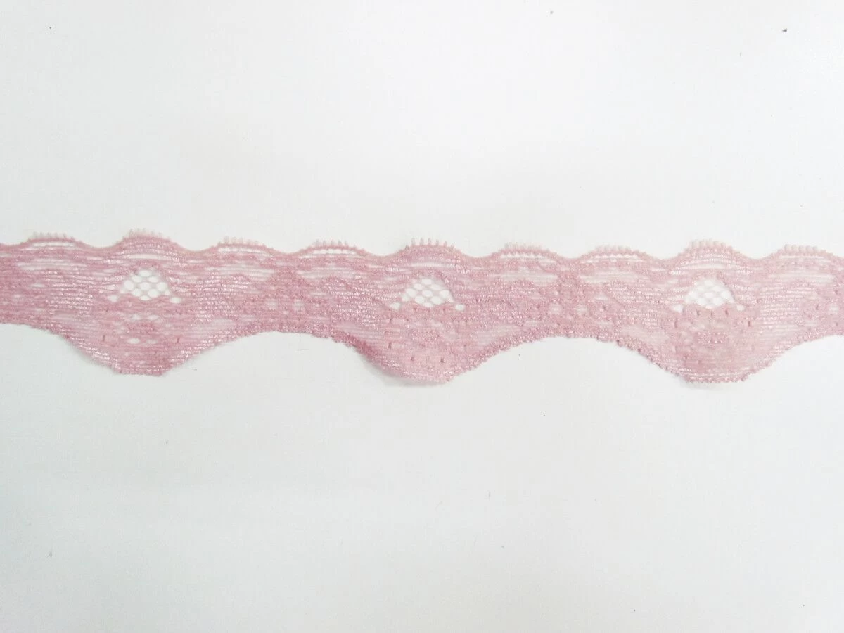 This stretch trim is approximately 4 cm wide and is a light and soft stretch trim option. This is a lace look trim, that stretches well along the length of the trim. This trim is light and flexible, and is suitable for decorative and dressmaking uses, in garments, crafts, and accessories.