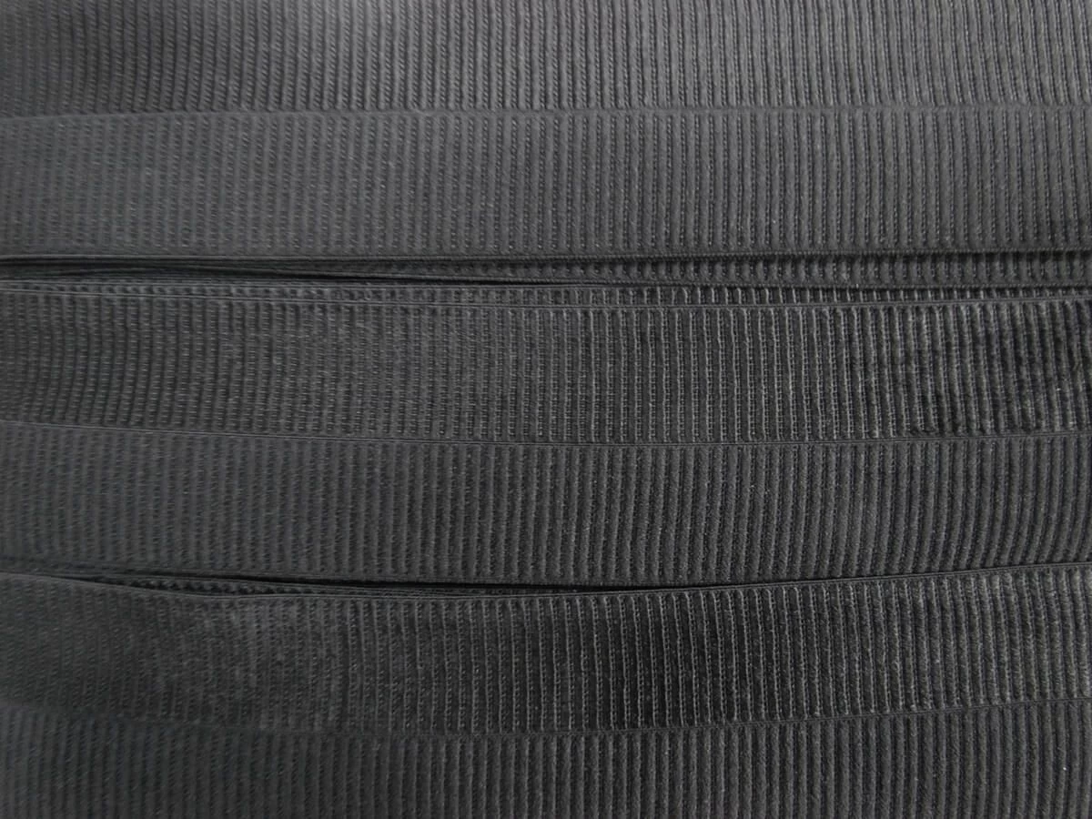 This mid weight ribbed fold over elastic has a great deal of stretch and return and is ideal for using in lingerie or other similar applications as a light weight elastic. This made in Japan elastic measures 40mm when unfolded and 20mm when folded, with one side being more matte and the other being slightly lustrous.
