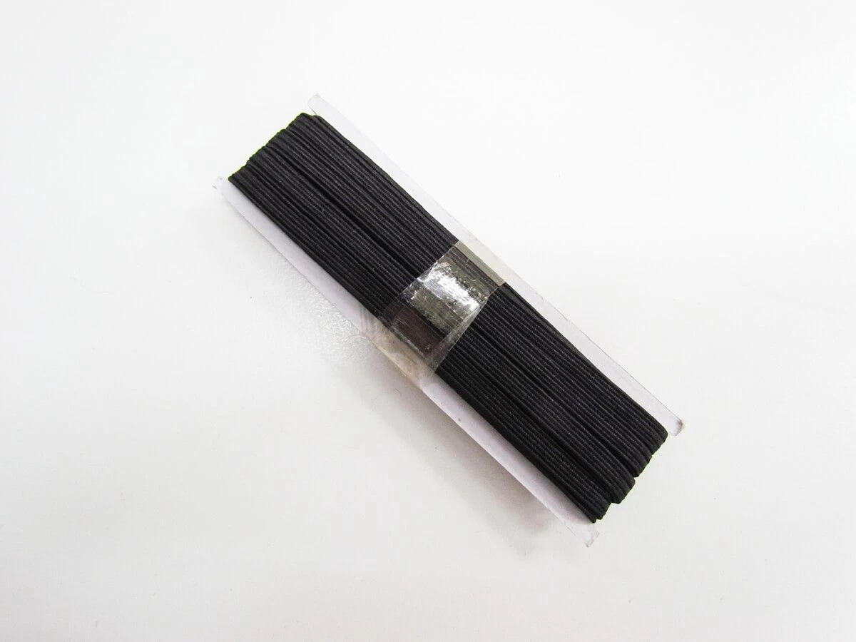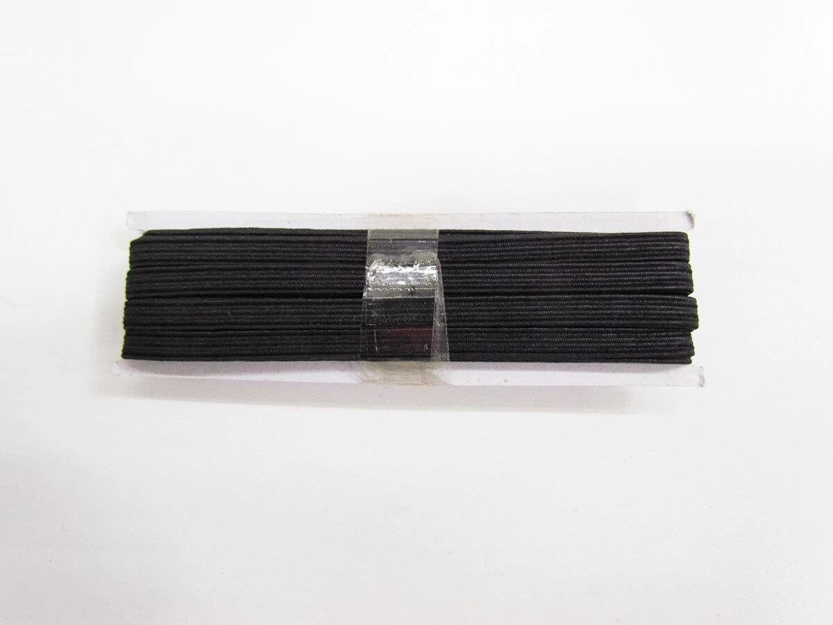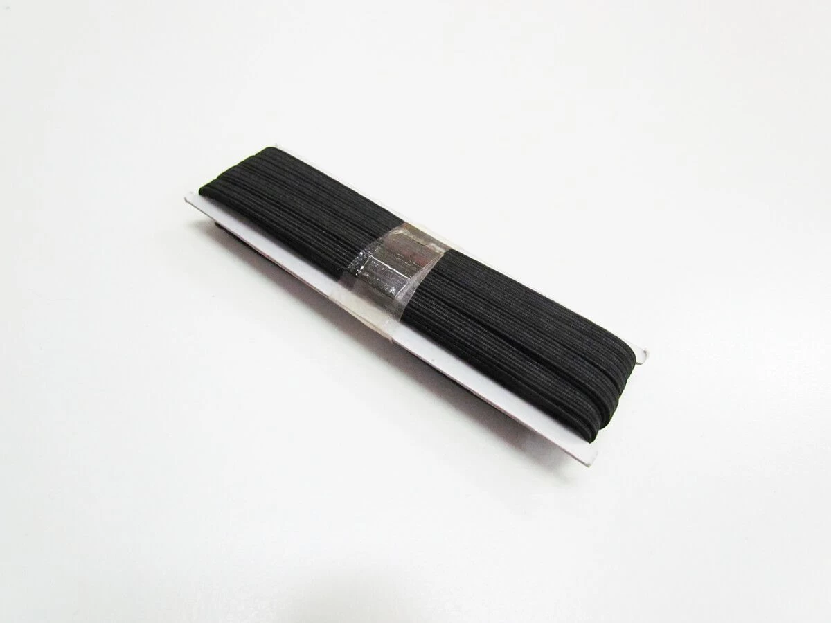 This product is a full roll of 5 mm elastic. This pack size is approximately 5m of elastic. This braided elastic is approximately 0.5 cm wide. This braided elastic features ribs of thin rubber elastic covered in black polyester, and which has good stretch and return. Braided elastic is a popular general purpose elastic, with a soft and comfortable feel, that is also durable. Braided elastic is a good choice for narrow widths of elastic.