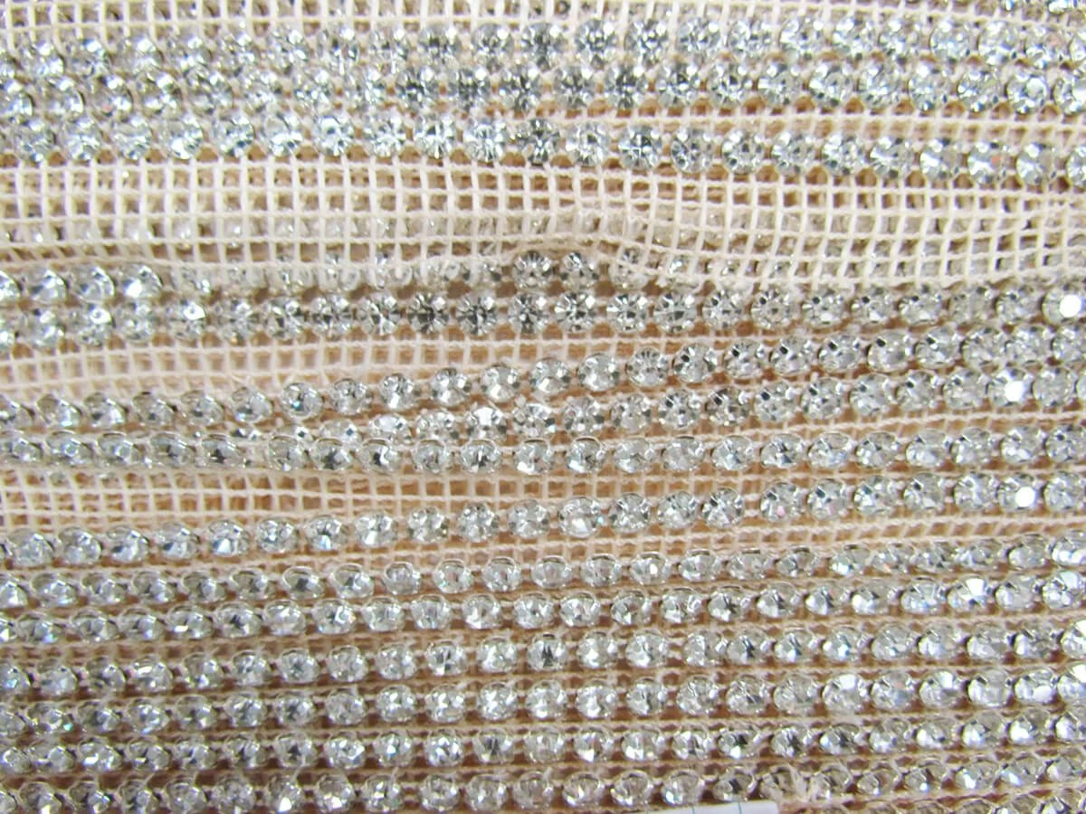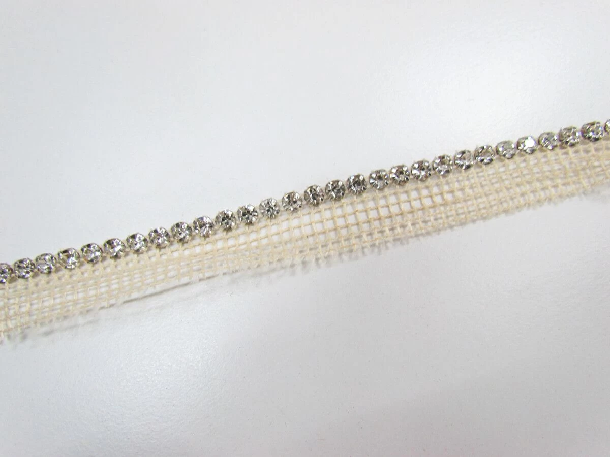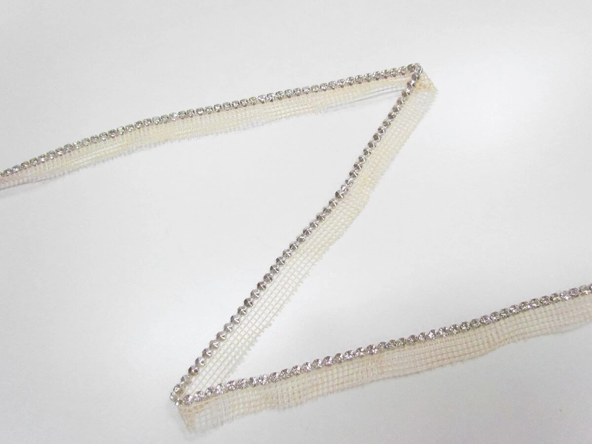 Ths amazing diamante trim is designed to be sewn into seams and hems and has 5mm diamantes sewn on to a 15mm tape for easy insertion into garments. This diamante trim is super shiny and is perfect for a range of costuming and apparel applications. Please note that if a quantity over 2 metres is ordered, trim may come in more than one piece.