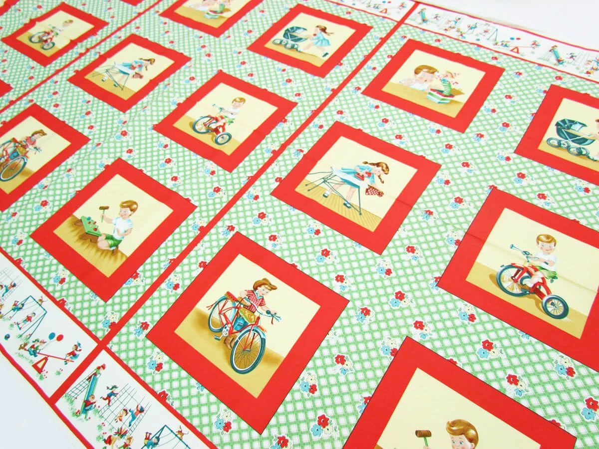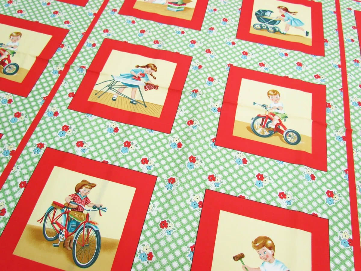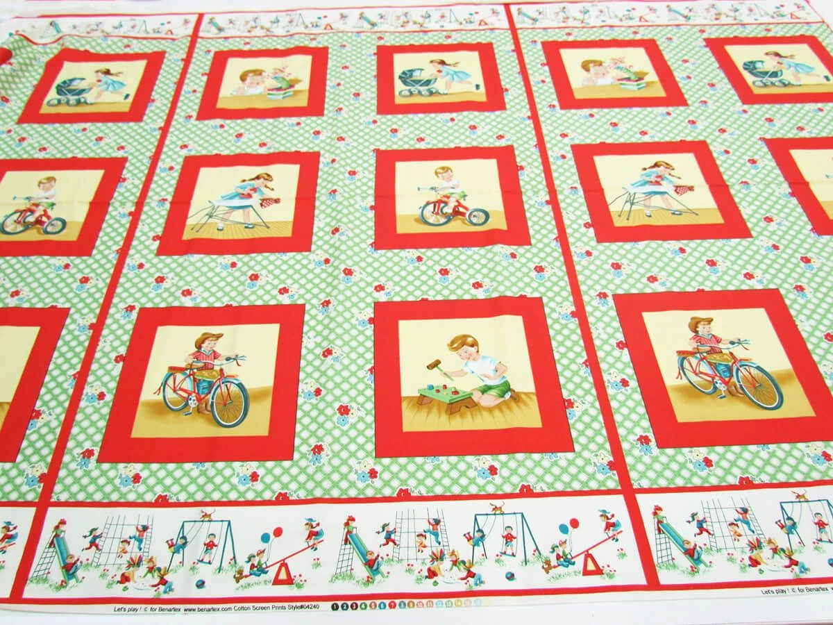 This is a 60cm printed panel on 100% cotton. A panel features 6 squares of the print. The panel is indicated by a red border, and the panel will be cut along this marker line. The panels are printed in a continuous length, so if you order more than one panel they will most likely be sent in a continuous length, unless the full length is not available.