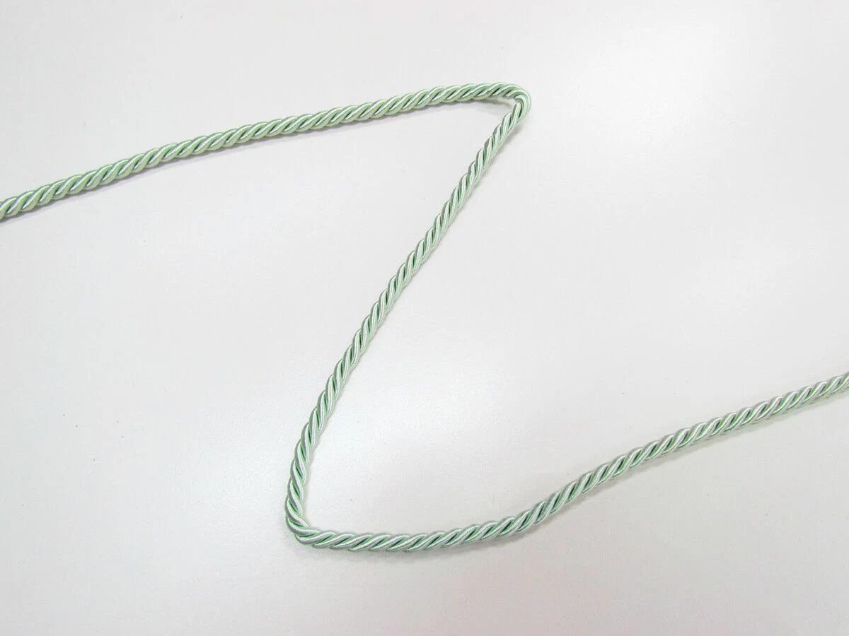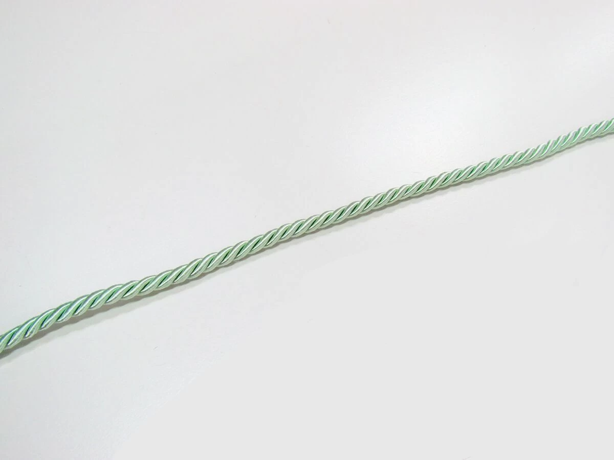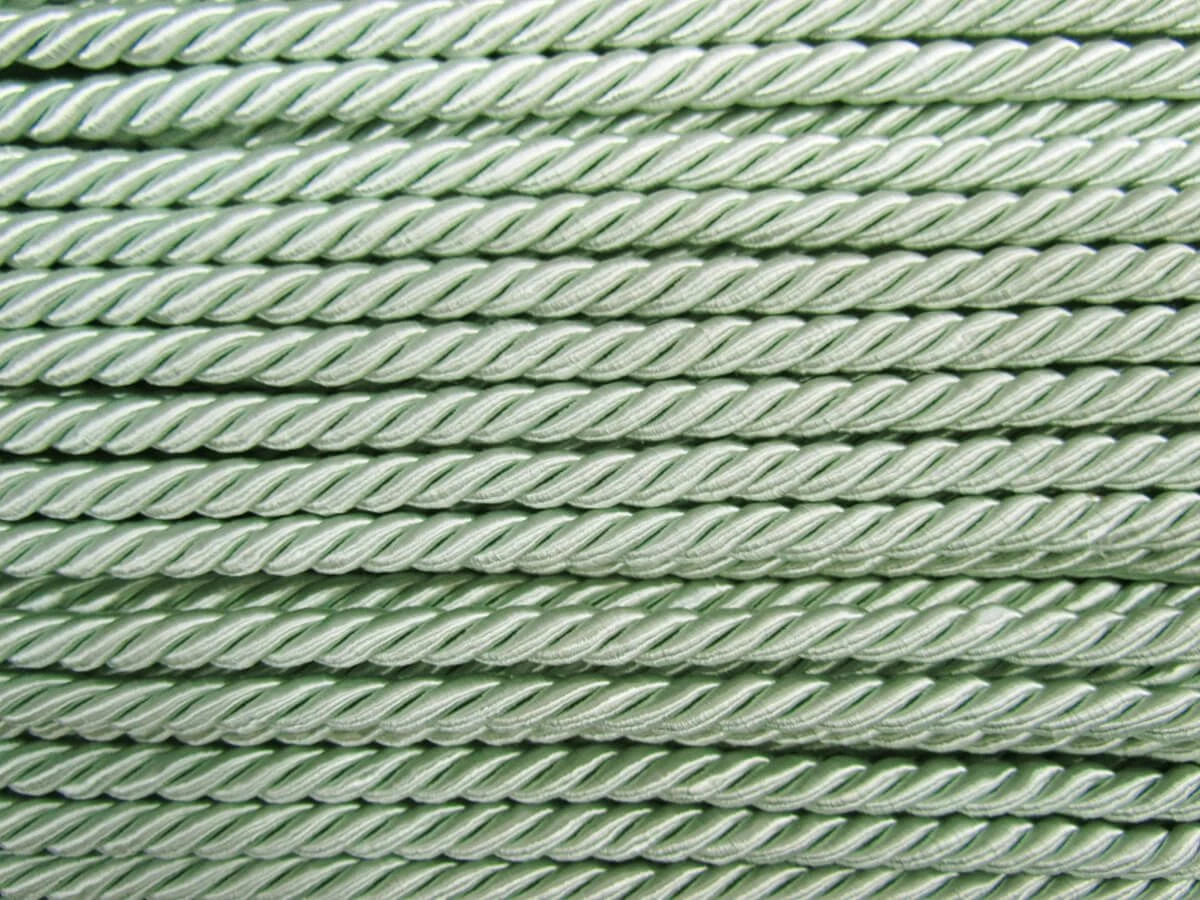 This mint twisted cord trim is made from a nylon and rayon blend, creating a silky smooth trim with a great sheen. This twisted cord trim measures approximately 6mm in width and is ideal for adding to craft, furnishing and apparel projects.