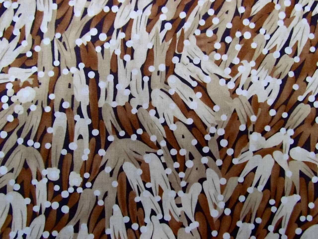 This indigenous artwork print 100% cotton fabrics are a medium weight, non stretch. Perfect for clothing, as well as patchwork and quilting fabrics.