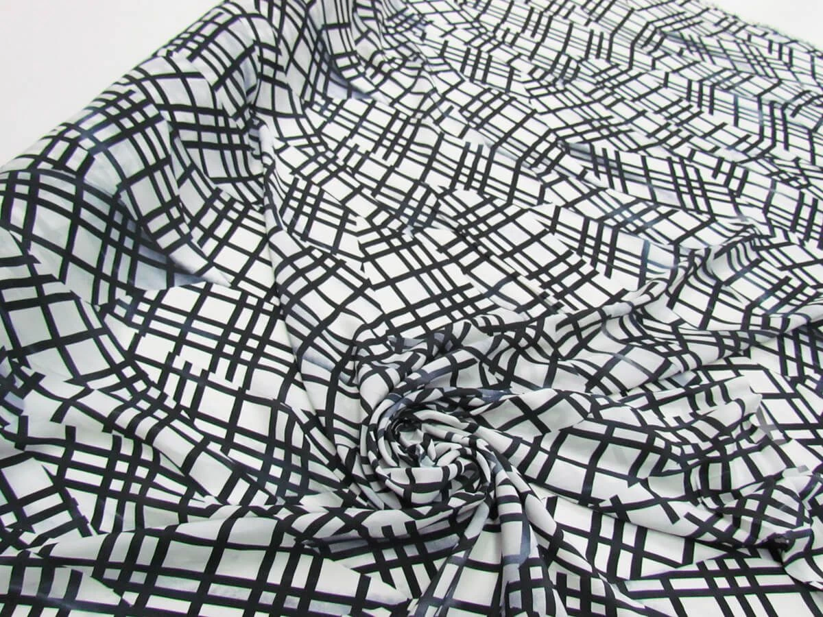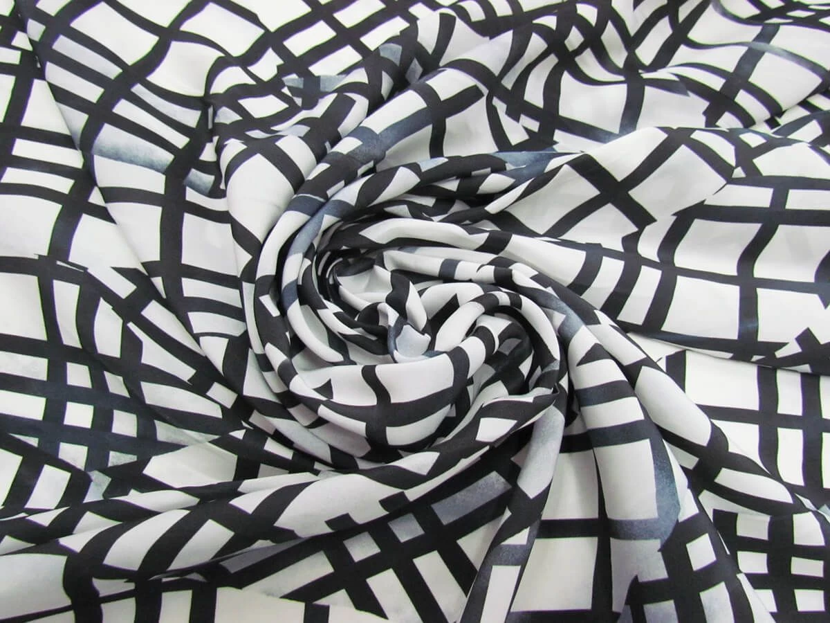 This faille fabric is a lightweight polyester with beautiful drape and fall. This fabric has a soft smooth soft feel, with a matte finish. This faille is only semi-opaque, and does show through a little, so a lining may be required for some of uses. This drapey fabric features a horizontal stripe print, running parallel to the selvedge.