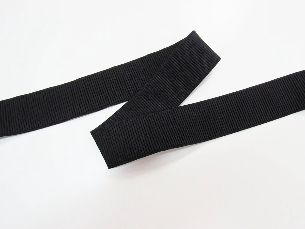 This is a good quality elastic and is budget friendly. Buy in bulk to get 10% off 10 metres or more. This is a ribbed elastic that is sturdy feeling, with strong stretch and return. The ribbed knit of this elastic is designed to limit rolling and curling of the elastic. This elastic is good for use in waistbands and for comfortable wider elastic uses.