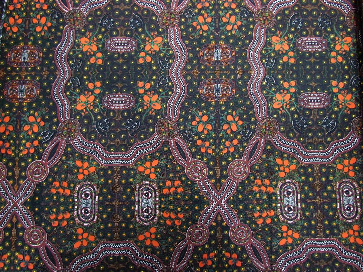 This indigenous artwork cotton features a bush food dreamtime story inspired print. This fabric is 100% cotton fabric and a medium weight, with no stretch. This dreamtime story cotton fabric is perfect for clothing, as well as patchwork and quilting fabrics.