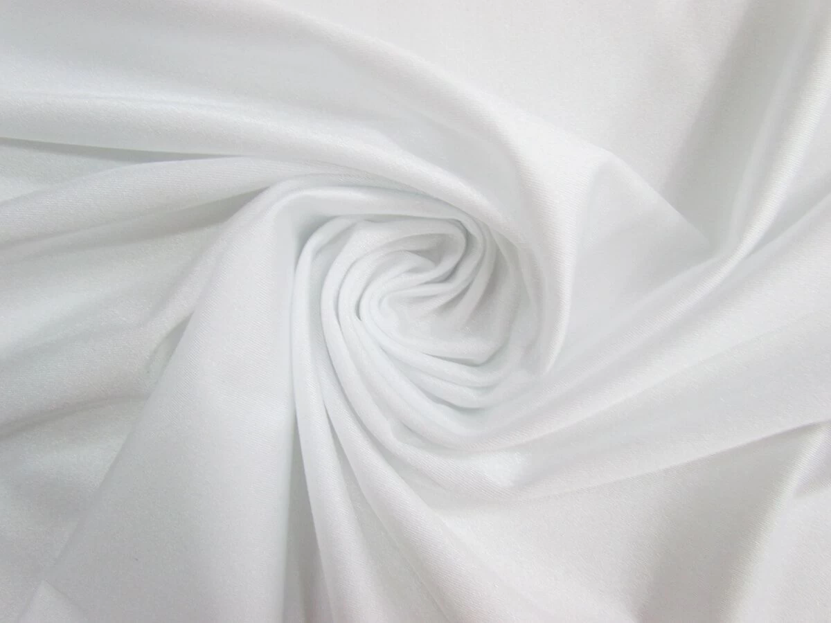 This shiny spandex is a light weight fabric with excellent drape, it has a lovely sheen to it and has excellent two way stretch and return. This Italian made spandex is a msotly sheer fabric that sheers more when stretched, so a lining may be desired. This shiny spandex is chlorine and pilling resistant and offer UV protection, making it perfect for use in swimwear, activewear, apparel and various theatrical, dance and gymnastics costuming applications.