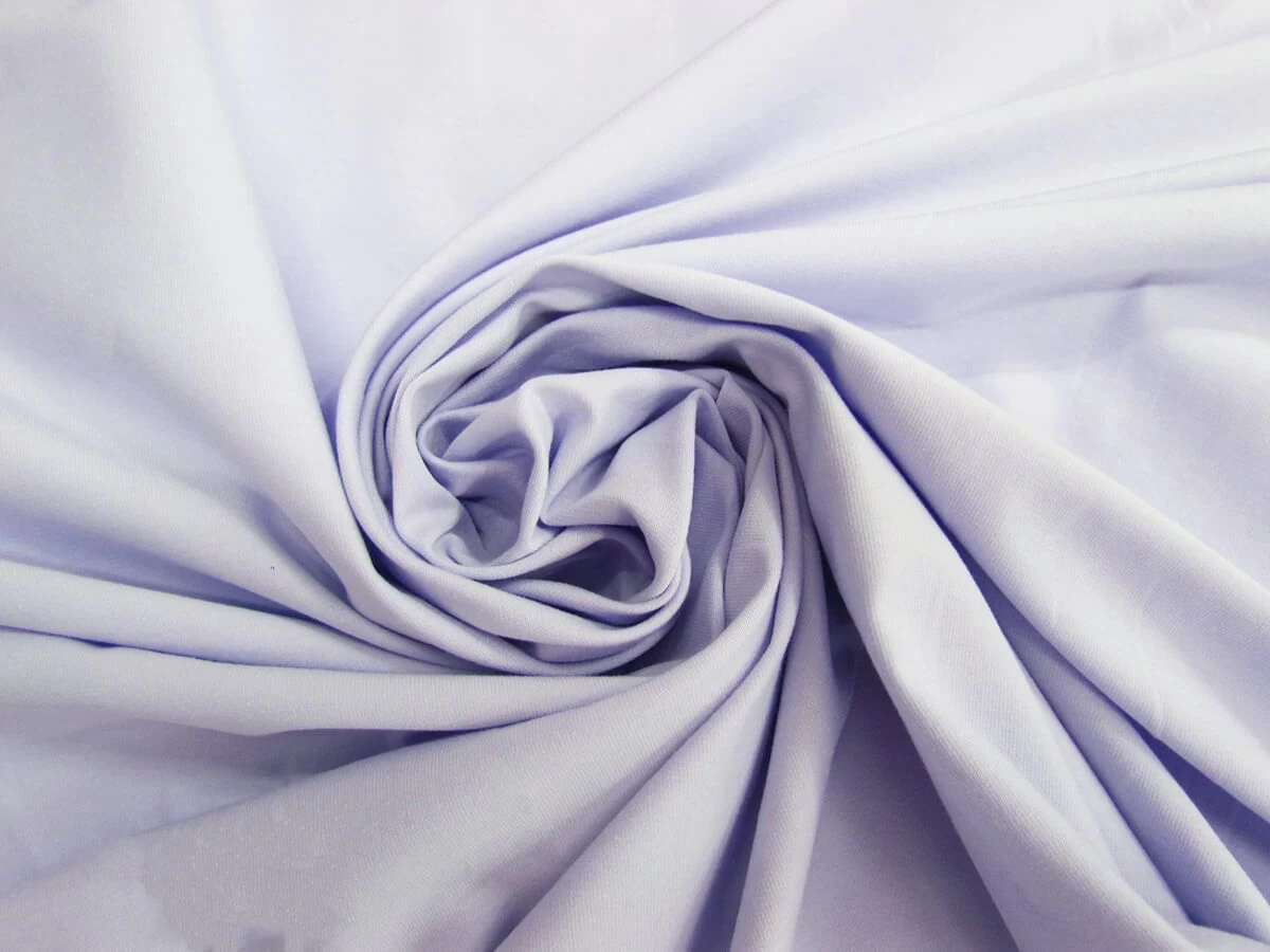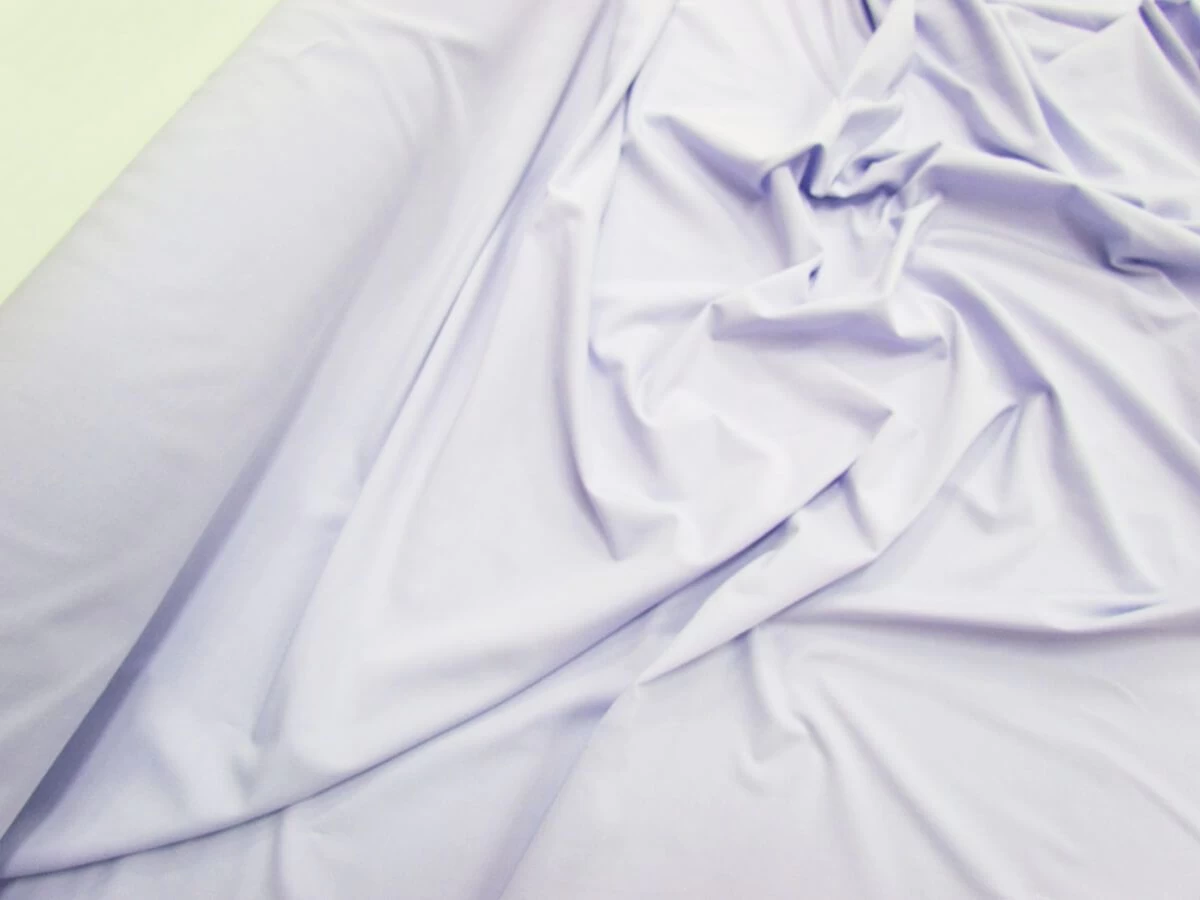 This cotton spandex fabric has a lovely feel, and is a nice light to mid-weight 2-way stretch cotton knit option. This cotton spandex will be comfortable and breathable, with a spandex stretch and support. This spandex has stretch and return in all directions. This is a plain purple toned cotton spandex, with an semi-opaque look, though it does sheer somewhat when stretched. This spandex is suitable for cotton active wear, dance wear, and cotton t-shirts. If using for active wear we suggest a double layer, using with a stretch lining fabric.
