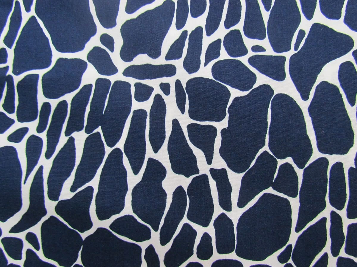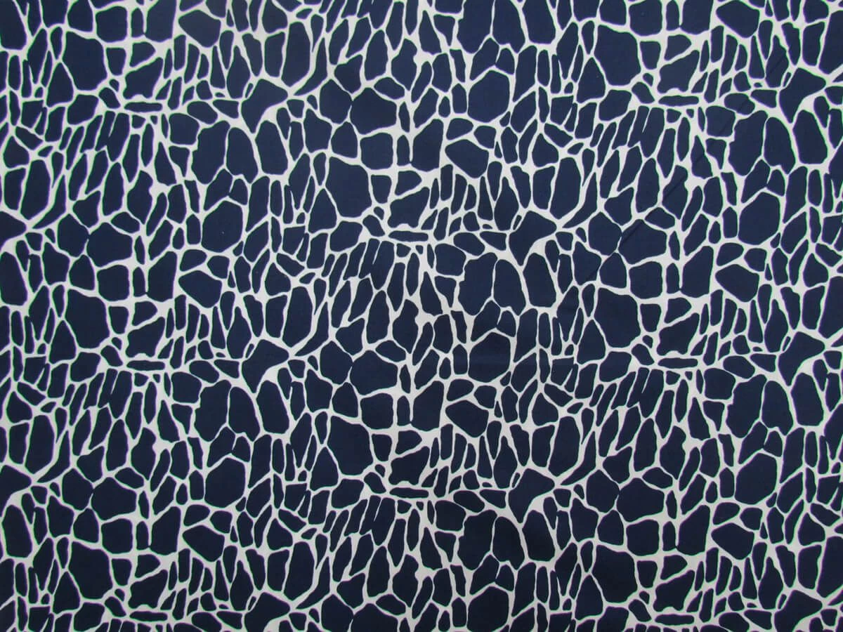 This is a lightweight 100% cotton fabric suitable for patchwork projects that features a navy crackle print on a light cream background. This cotton is also suitable for other clothing and craft projects, although may need a lining in apparel applications.
