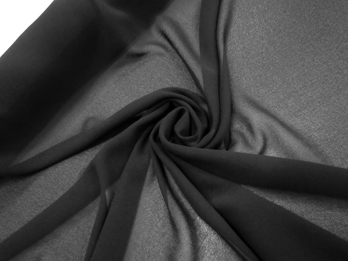 This light weight black crepe is a fabric with great texture created by the crepe weave. This polyester crepe is sheer, so a lining may be desired for some applications.