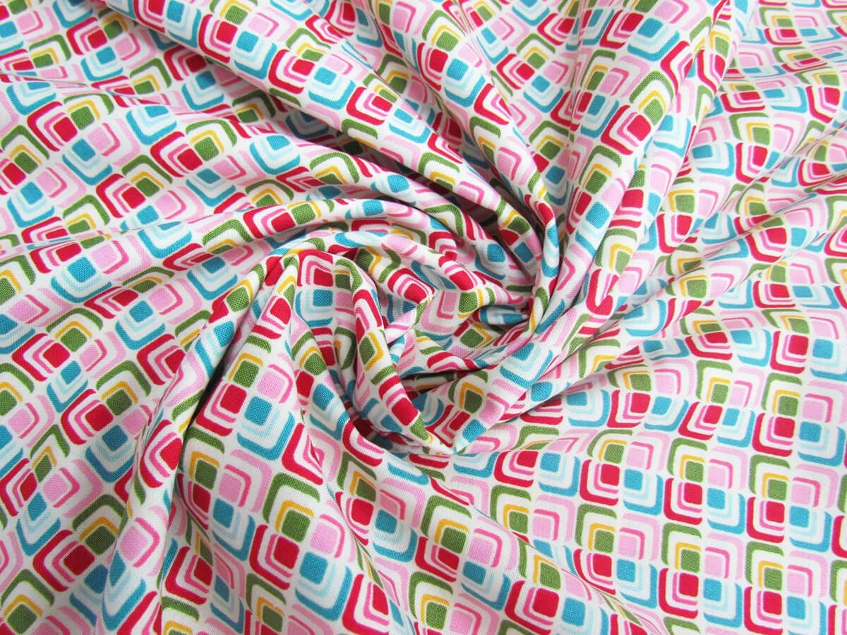 This printed cotton fabric is soft, with a smooth finish. This 100% cotton fabric has been designed for patchwork and quilting projects. This good quality cotton fabric is also suitable as well as shirts, tops, dresses and skirts. A cotton voile or lining fabric may be desired for dresses and skirts.