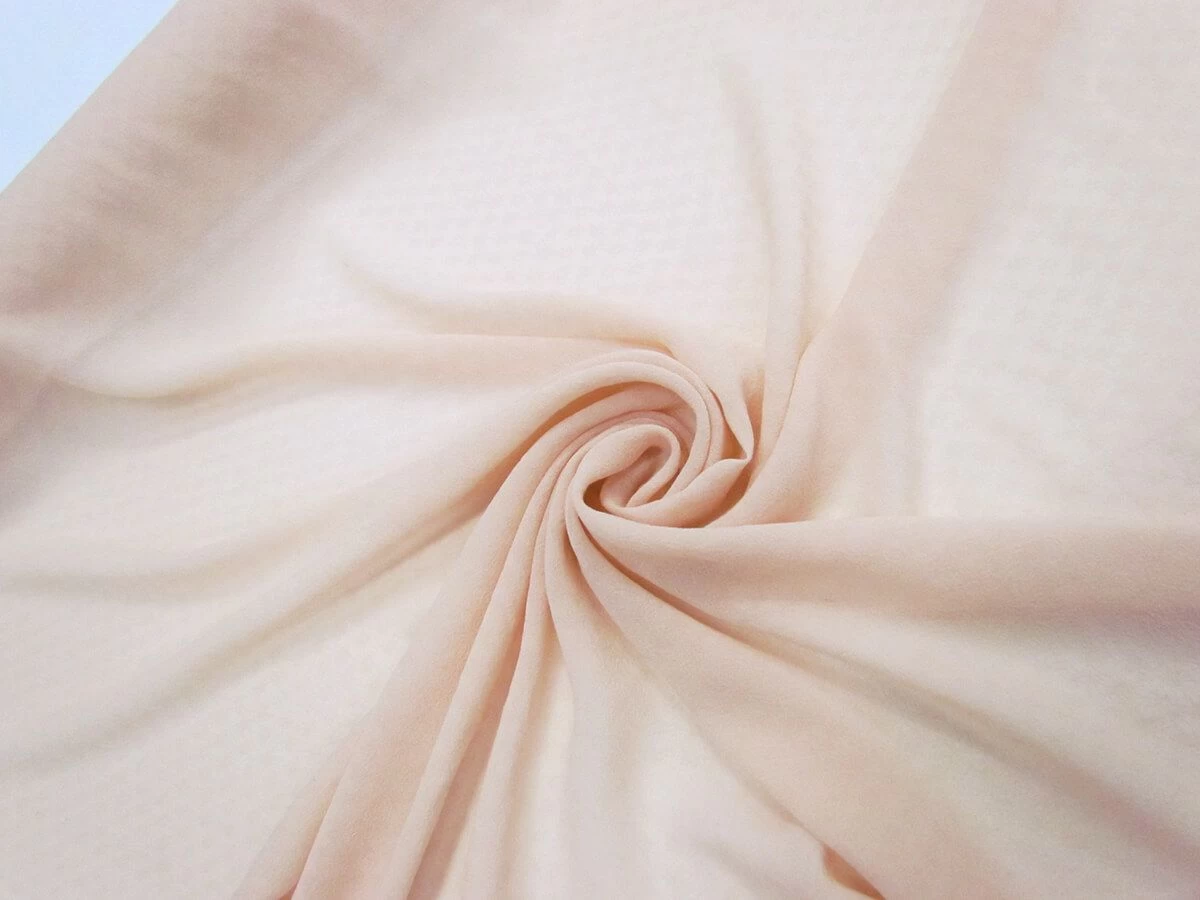 This 100% silk chiffon is a lovely light weight fabric with a subtle texture. This chiffon fabric has a subtle star pattern woven into the fabric, adding to the delicate look of the fabric. This chiffon has some light stretch along the warp and is a sheer fabric.
