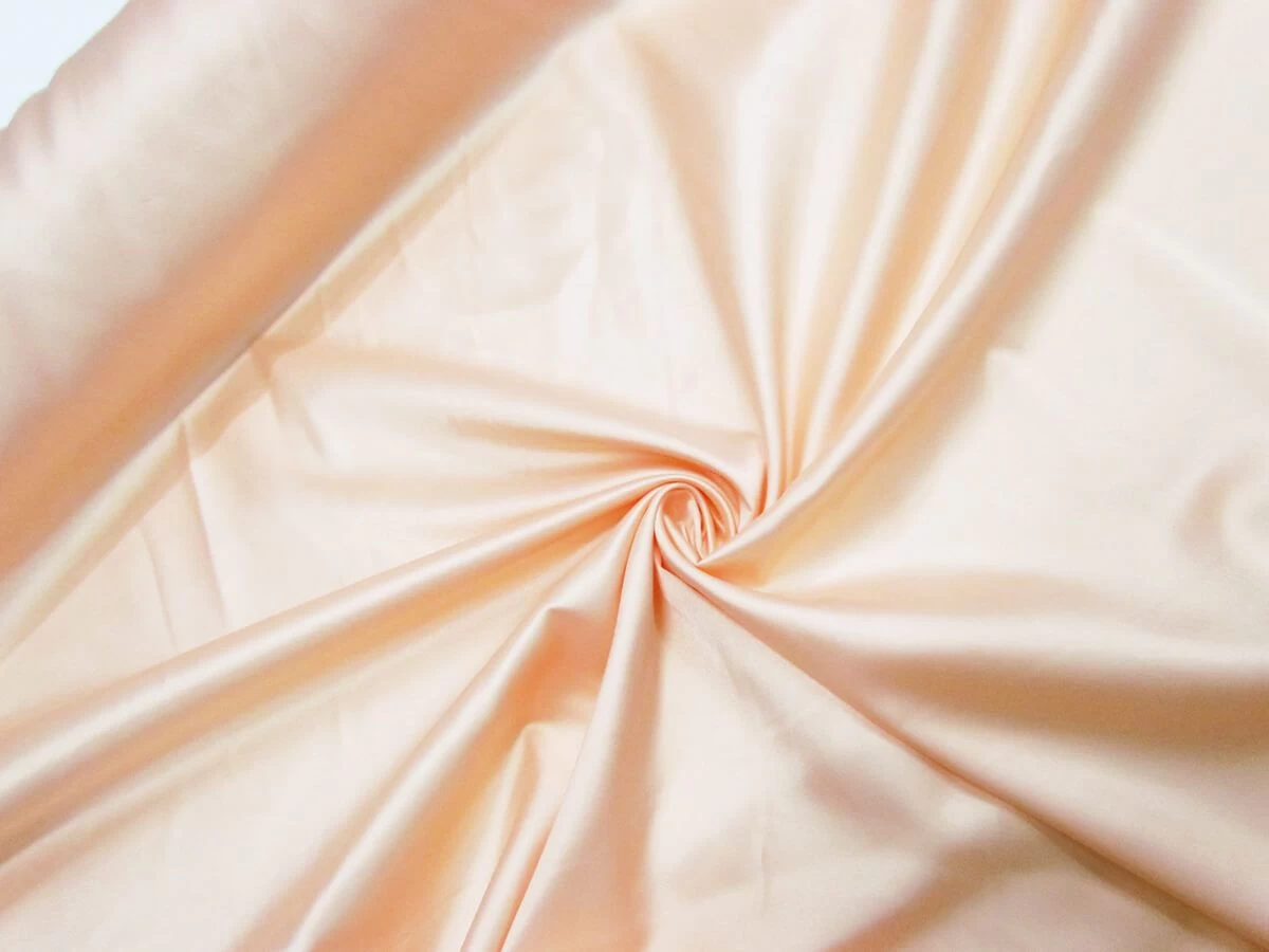 This charmeuse satin has a delustered finish, creating a gorgeous subtle sheen with smooth feel on one side of the fabric, with the other side of the fabric having a more matte finish. This delustered charmeuse satin is a light weight fabric with a slight stretch along the weft that is semi-opaque as darker colours can be seen through this fabric, especially as it is a lighter colour fabric. Due to this, a lining may be desired for apparel applications.