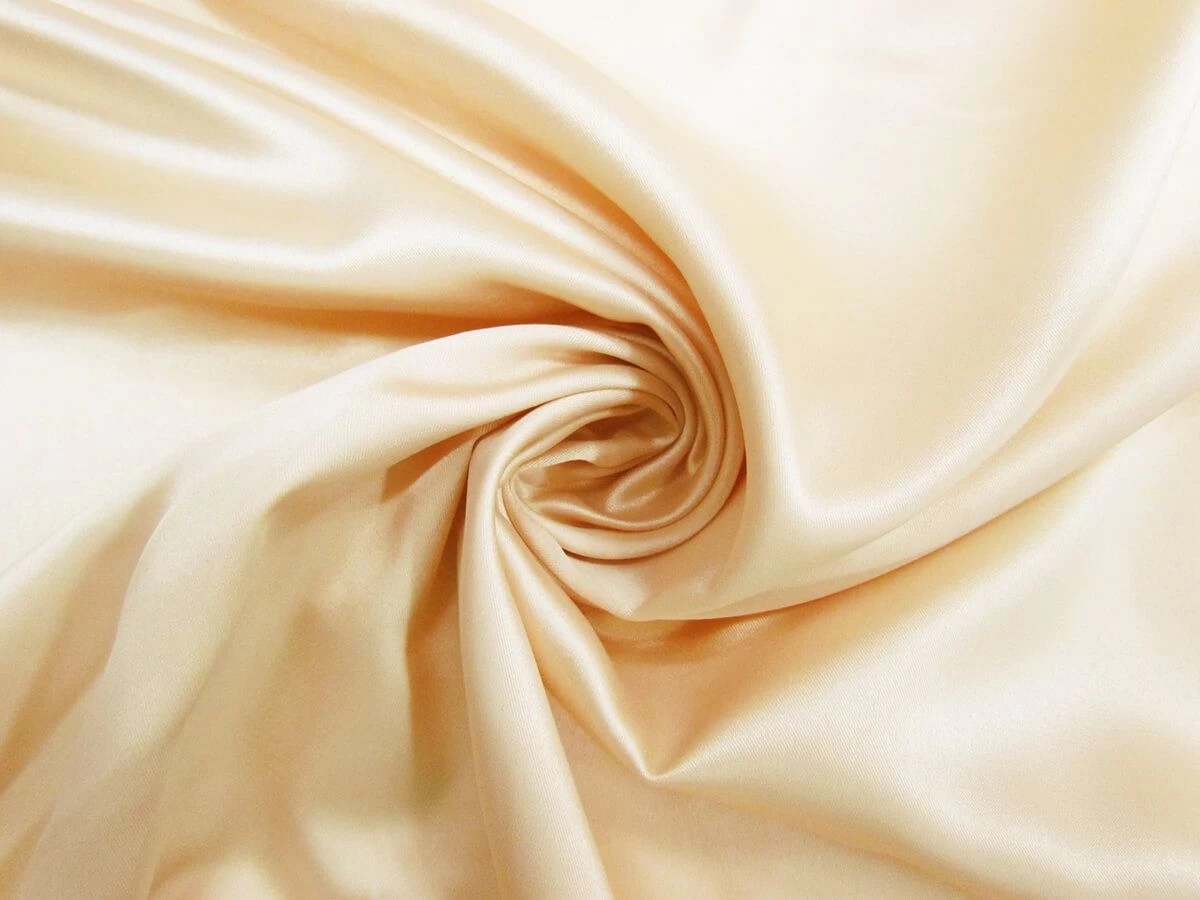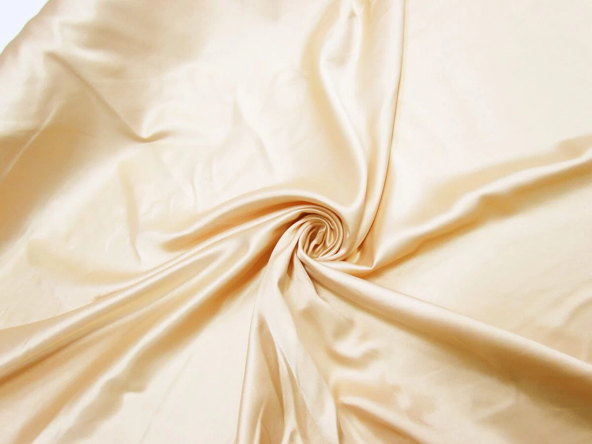 This charmeuse satin has a delustered finish, creating a gorgeous subtle sheen with smooth feel on one side of the fabric, with the other side of the fabric having a more matte finish. This delustered charmeuse satin is a light weight fabric with a slight stretch along the weft that is semi-opaque as darker colours can be seen through this fabric, especially as it is a lighter colour fabric. Due to this, a lining may be desired for apparel applications.
