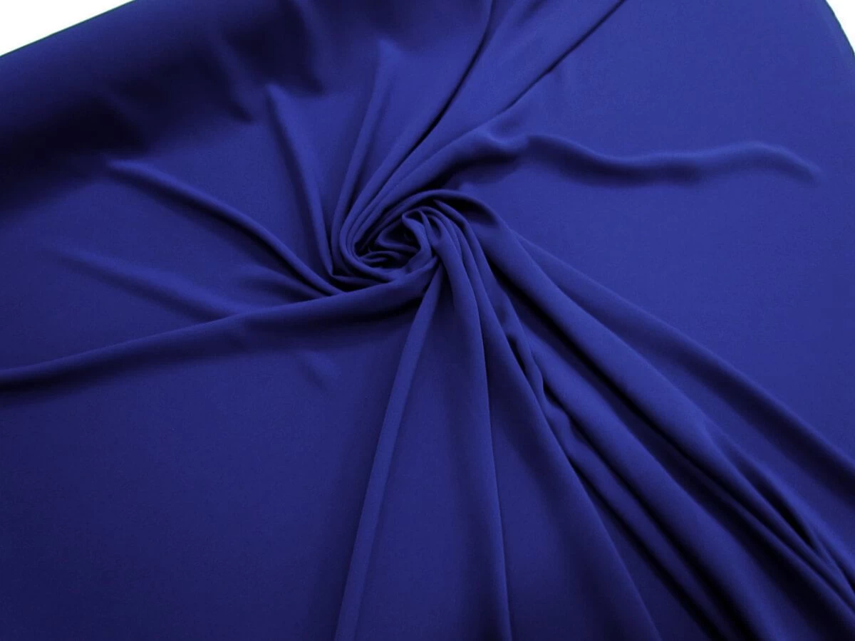 This crepe fabric has a textured look and feel, with great drape and fall. This fabric is only nearly opaque, though does show through a little, and a lining may be desired for some uses and comfort.