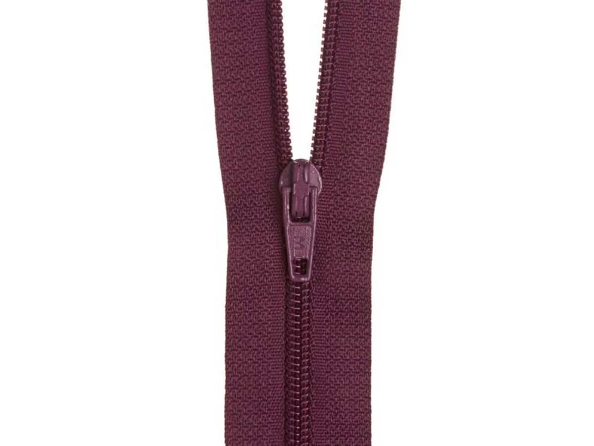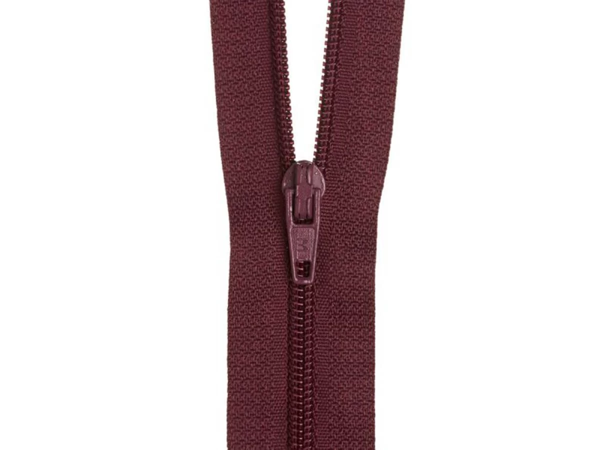 This Dress Zip- 40cm (16 inch)- 171 WINE is a high quality nylon zip with a metal zip pull on a 100% polyester tape. This closed end zip is great for dresses, trousers as well as cushions & craft projects where the zipper will be visible if not covered. If you are looking for a zipper that won’t be visible in your garment or project, have a look at our invisible zippers.