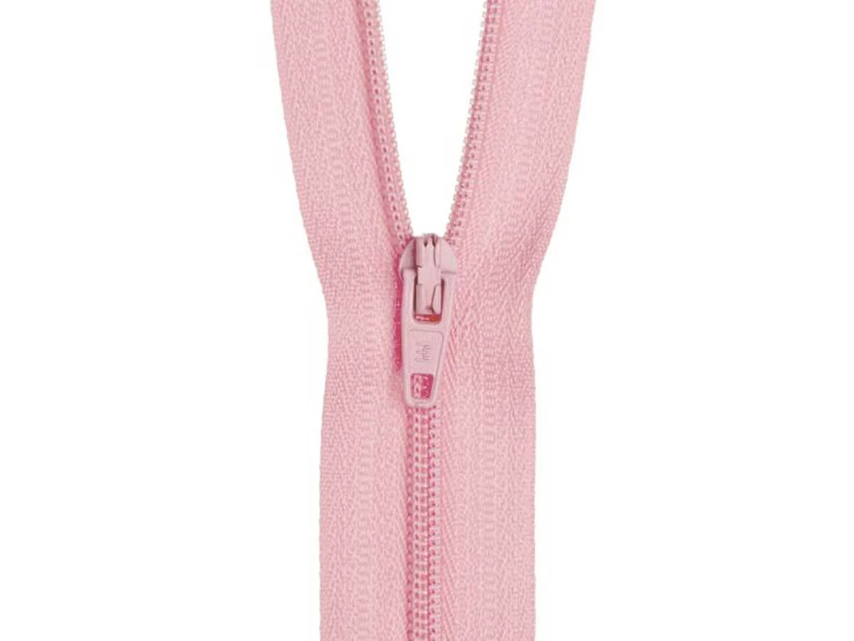 This Dress Zip- 51cm (20 inch)- 134 LIGHT PINK is a high quality nylon zip with a metal zip pull on a 100% polyester tape. This closed end zip is great for dresses, trousers as well as cushions & craft projects where the zipper will be visible if not covered. If you are looking for a zipper that won’t be visible in your garment or project, have a look at our invisible zippers.
