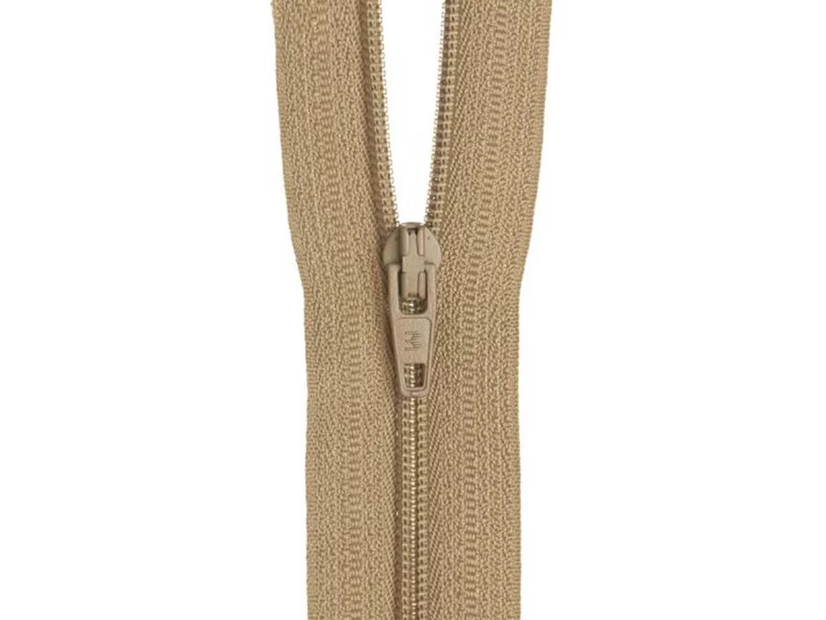 This Dress Zip- 51cm (20 inch)- 284 BEIGE is a high quality nylon zip with a metal zip pull on a 100% polyester tape. This closed end zip is great for dresses, trousers as well as cushions & craft projects where the zipper will be visible if not covered. If you are looking for a zipper that won’t be visible in your garment or project, have a look at our invisible zippers.