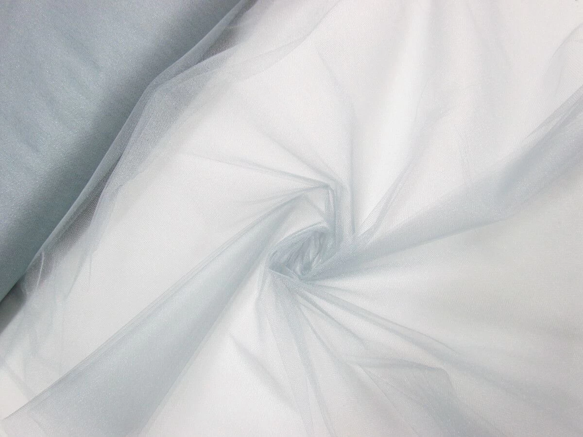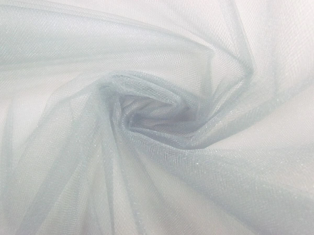 This wide width glitter silver tulle is a soft and very light weight net fabric that is very sheer, with one layer being barely visible with a subtle colour. However, when this tulle is layered or gathered it has a more opaque look and more concentrated colour. This tulle has a light degree of two way stretch and return. This tulle is ideal for use in various apparel, costuming and eveningwear applications.