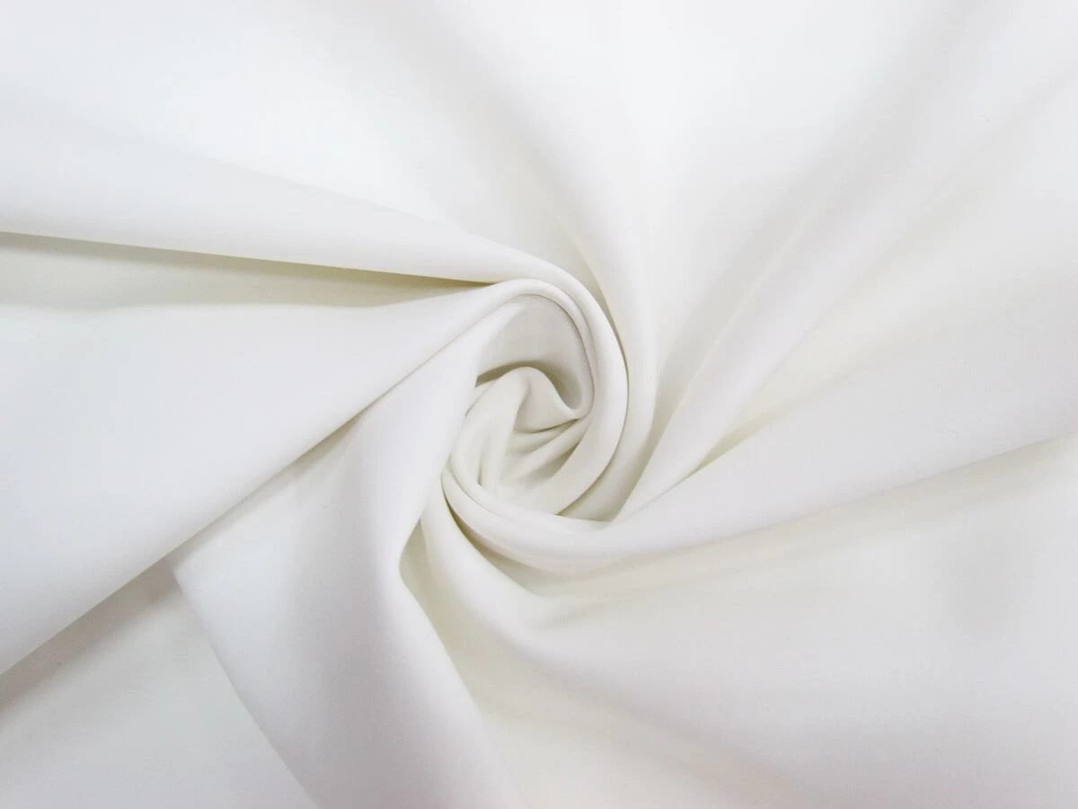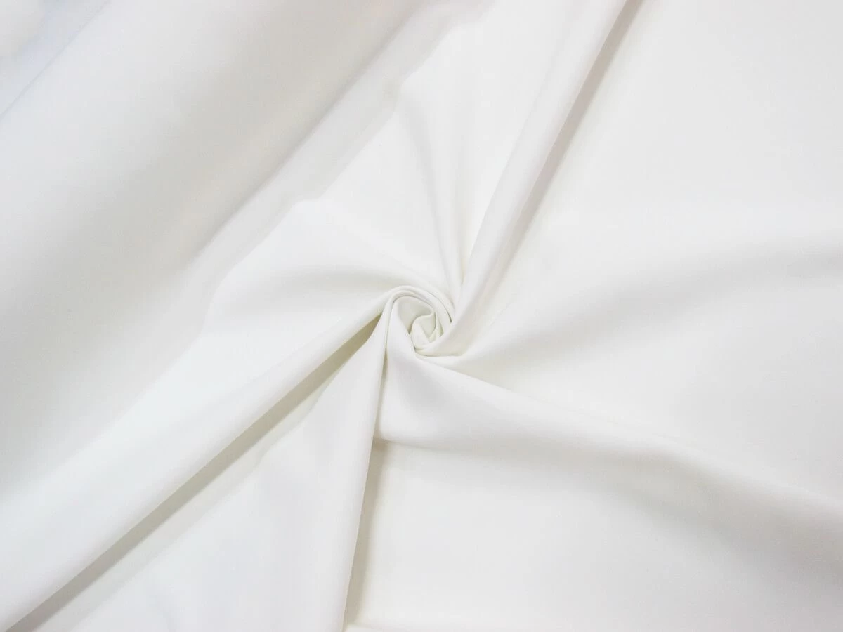 This creamy white heavy weight spandex has a soft and smooth feel while still being thick and more structured. This spandex has excellent two way stretch and return and has great coverage.