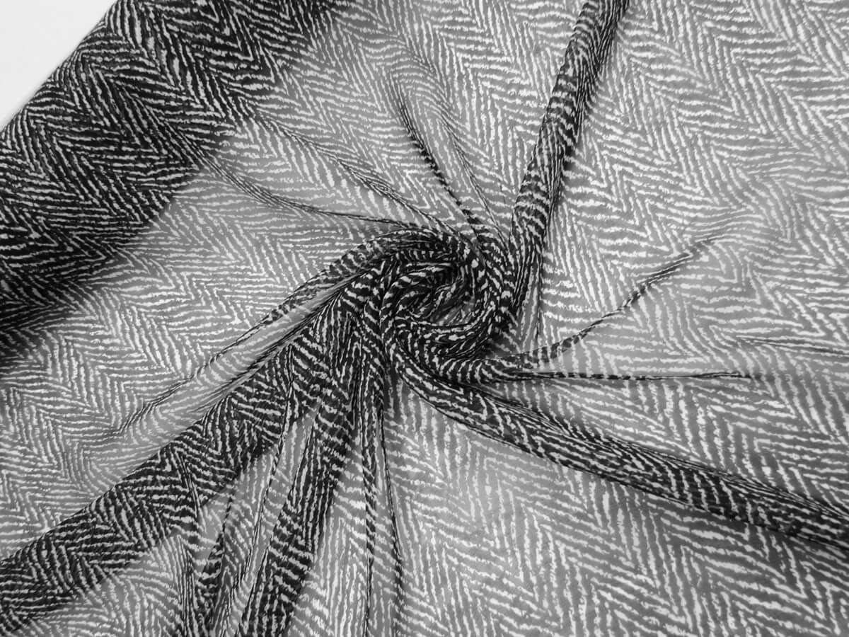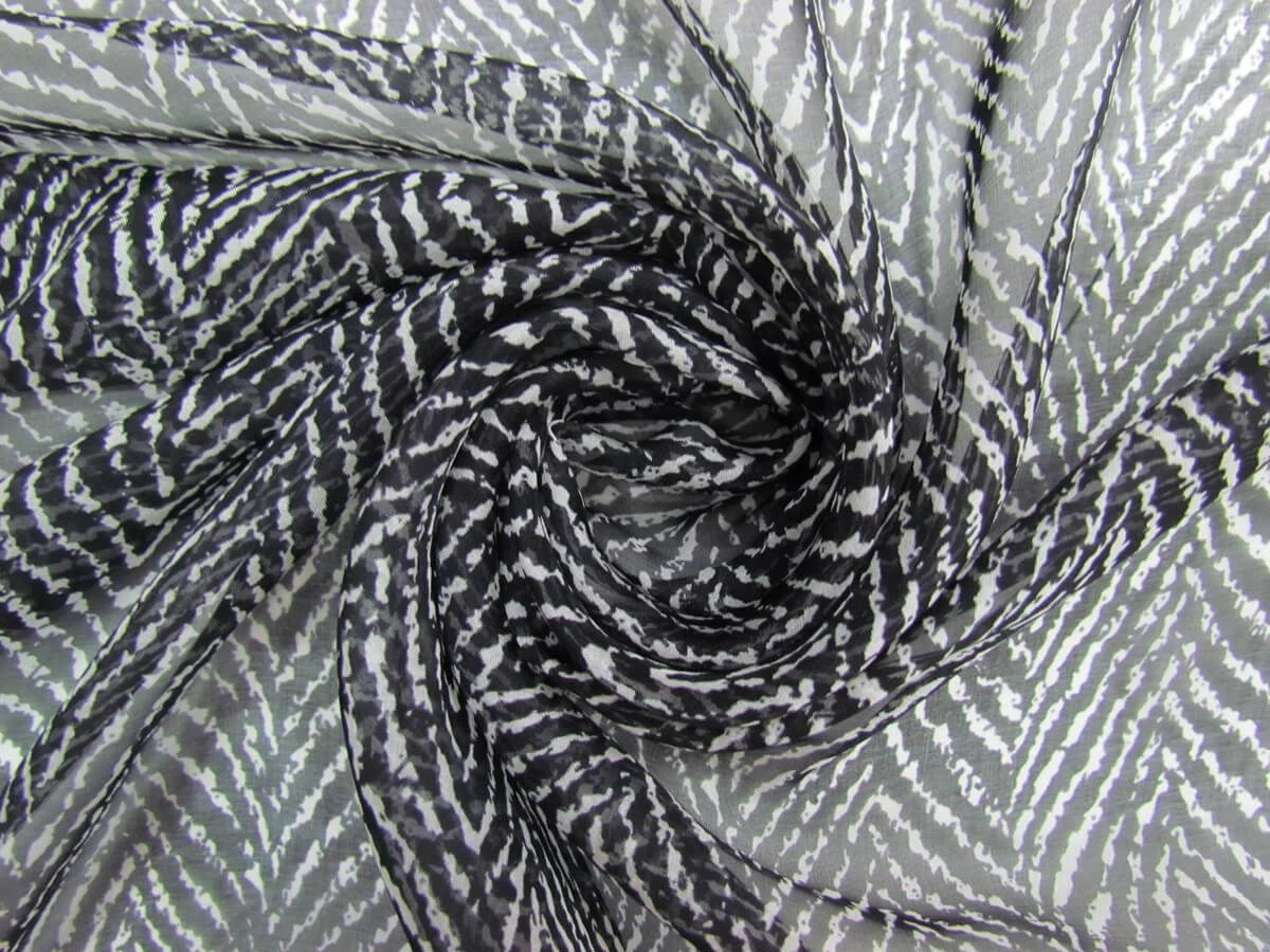 This beautiful 100% silk chiffon is a fabric with a great soft feel and amazing drape. This silk chiffon is a sheer fabric with a flowy look to it that is perfect for blouses, skirts and dresses.