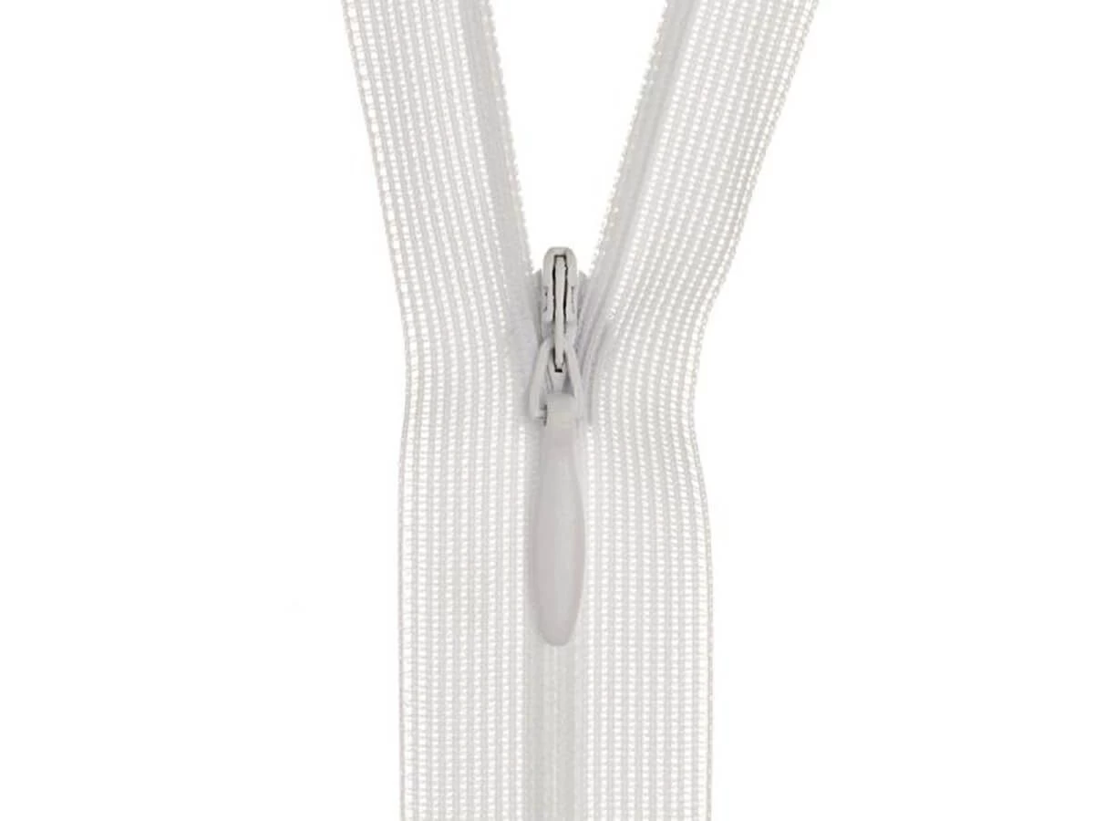 This Invisible Zip- 25cm (10 inch)- 101 WHITE is a high quality nylon zip with a metal zip pull on a 100% polyester tape. This closed end invisible zip is great for dresses, skirts, trousers as well as cushions & craft projects where you don’t want the zip to be visible. For a truly invisible zip finish, sew with an invisible zipper foot on your sewing machine.