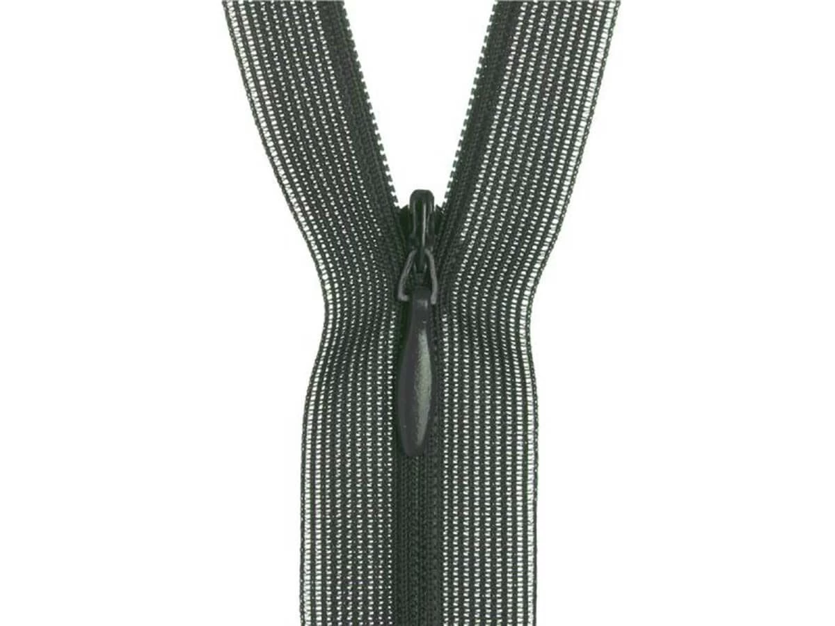 This Invisible Zip- 56cm (22 inch)- 615 HUNTER GREEN is a high quality nylon zip with a metal zip pull on a 100% polyester tape. This closed end invisible zip is great for dresses, skirts, trousers as well as cushions & craft projects where you don’t want the zip to be visible. For a truly invisible zip finish, sew with an invisible zipper foot on your sewing machine.