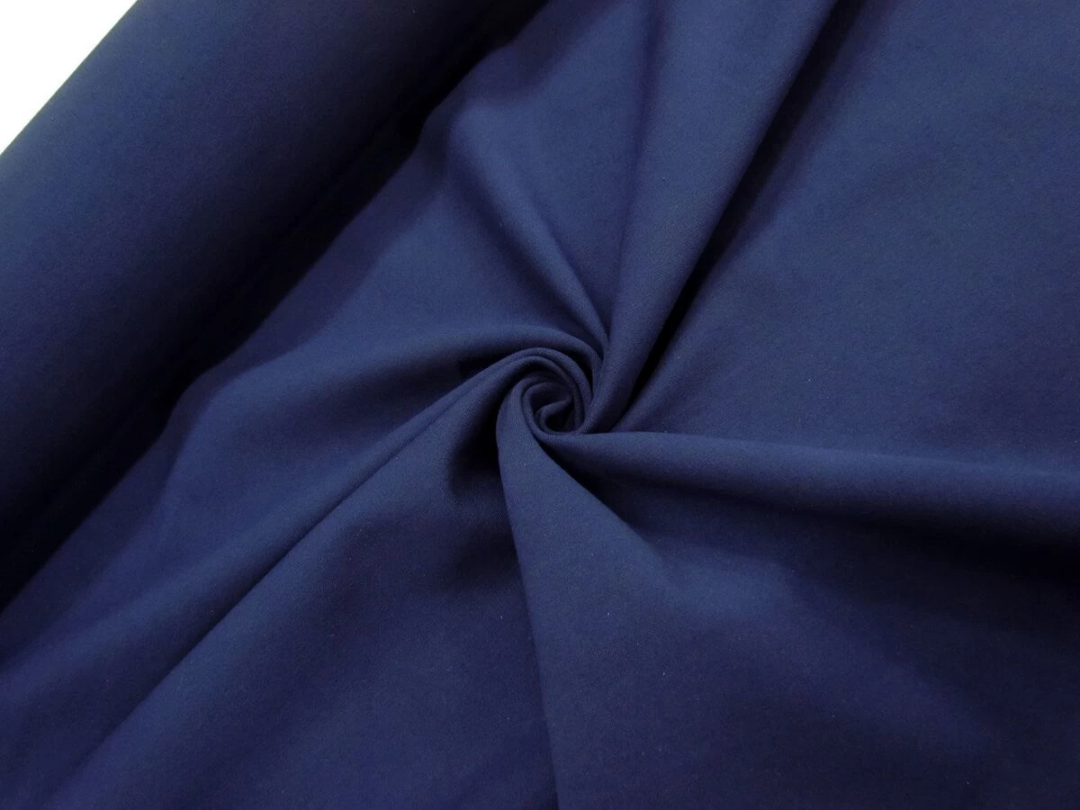 This navy blue cotton ponte is a heavy weight knit fabric with a soft and comfortable feel. This ponte has great stretch and return along the weft of the fabric and good stretch and return along the warp too. This cotton ponte is an opaque fabric and remains mostly opaque when stretched to its full capacity.