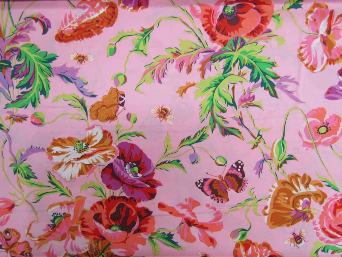 This stunning cotton print has been designed by Kaffe Fassett. This 100% cotton fabric feels lightweight in hand, and is designed for quilting and patchwork projects. This woven cotton fabric is also suitable for other projects, including clothing, crafts, and accessories. This fabric is mostly opaque, however a lining may be desired for some apparel projects.