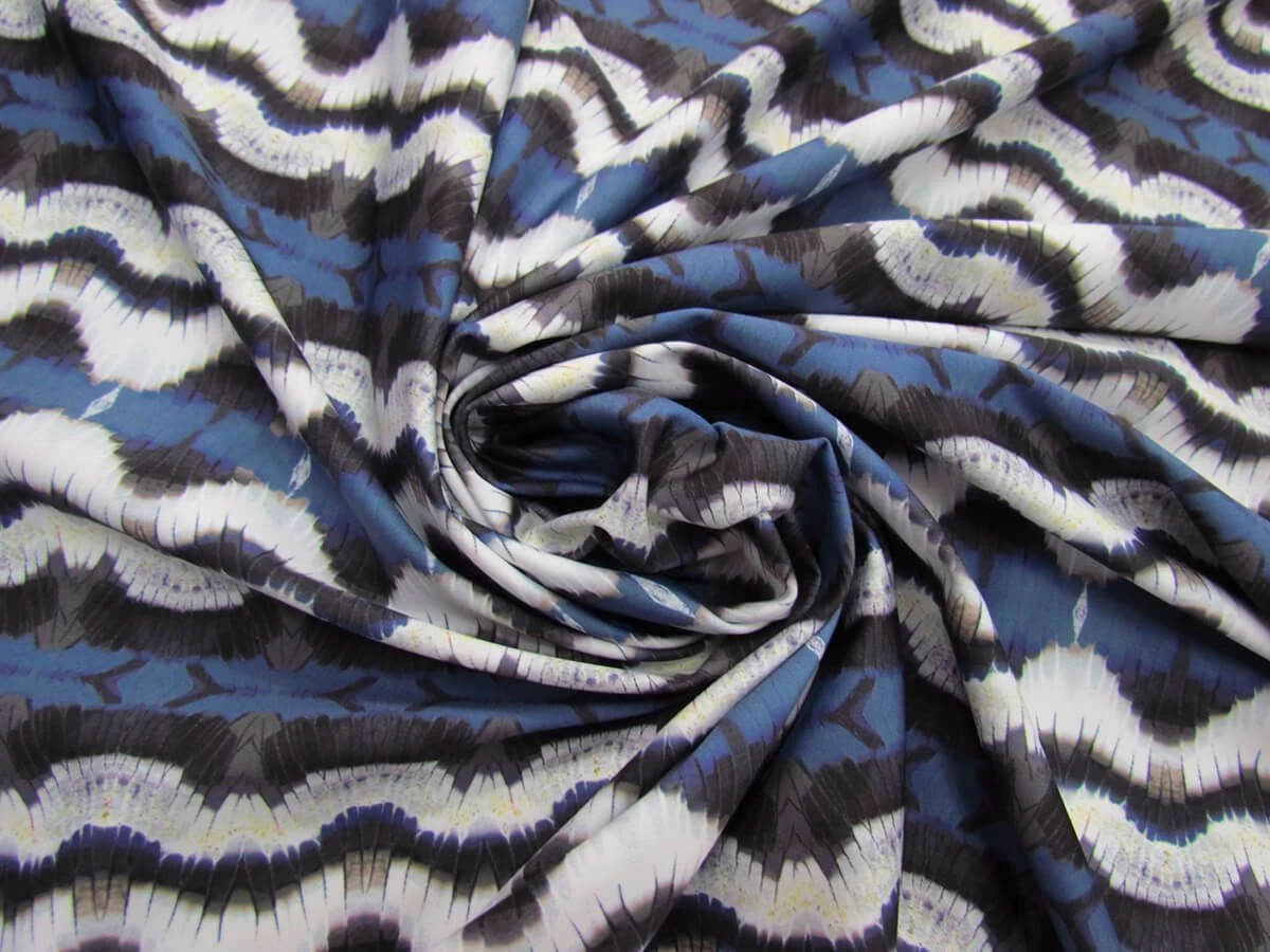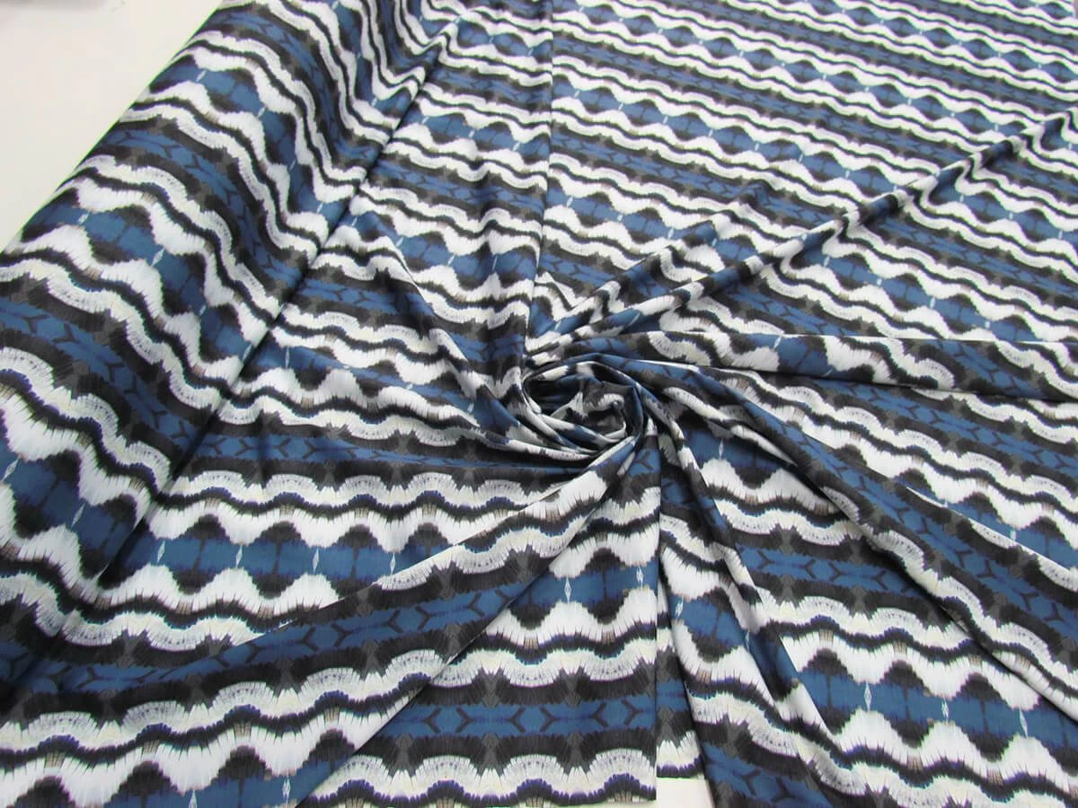 This printed spandex has a nice comfortable feel and is relatively lightweight. This spandex stretches and returns well in all directions. This spandex is best teamed up with a matte spandex swimwear fabric or swimwear lining fabric if using for swimwear. This fabric is also suitable for leggings, active wear and other items of apparel. This fabric is semi-opaque, and does sheer when stretched. A lining fabric is recommended for some uses. This printed spandex is made in Italy.