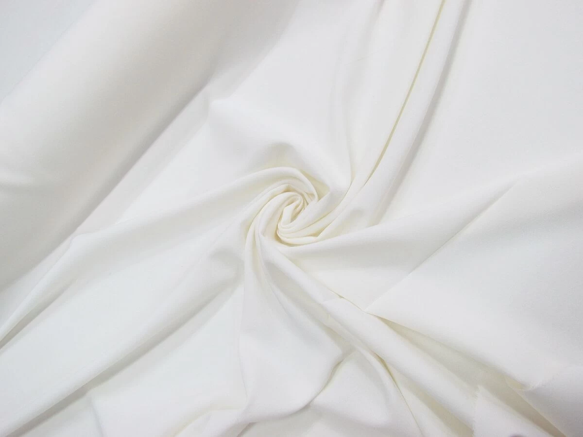 This drapey polyester crepe is a lightweight, mostly sheer fabric with a subtle texture created by the crepe weave of the fabric. This crepe has some slight two way stretch and return and may need a lining for some projects due to its sheerness.