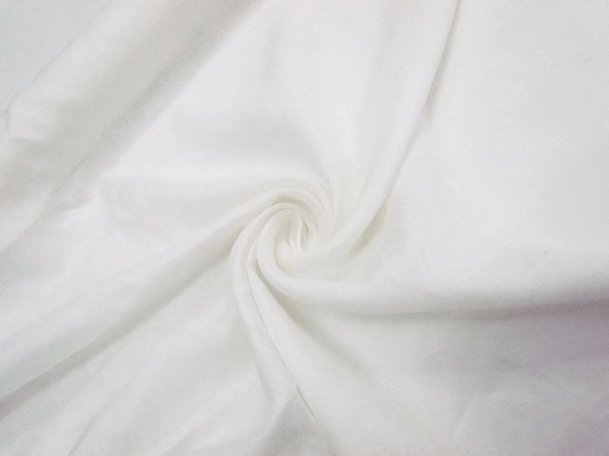 This white linen is a very light weight fabric with a soft feel to it. This 100% linen fabric is a mostly sheer fabric due to its more open, loose weave that makes it a comfortable and breathable fabric. Due to this, a lining may be desired for more opacity and to stop light showing through.