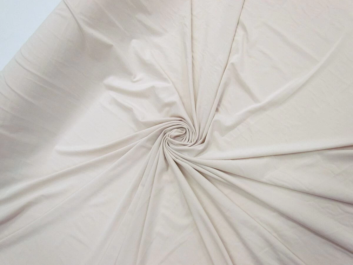 This light weight polyester and spandex blend fabric has a lovely soft and smooth feel. This matte spandex has excellent two way stretch and return and is a semi-opaque fabric, becoming less opaque the more it is stretched. Due to the semi-opaque nature of the fabric, a lining may be desired for some applications.
