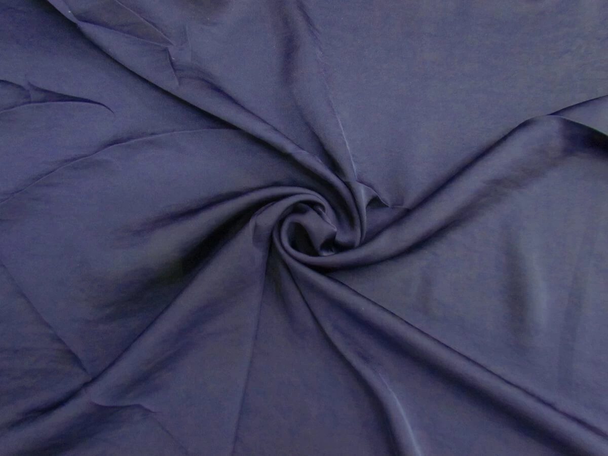 This 100% polyester lightweight satin is a semi opaque, navy satin fabric. This lightweight satin has no stretch to it. This fabric could be used as a lining or as a fashion fabric with a lining or self lining as it is semi-opaque.