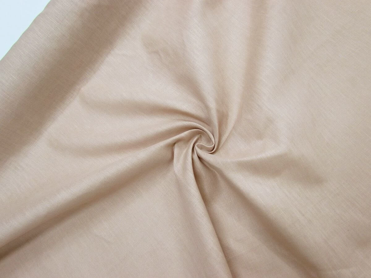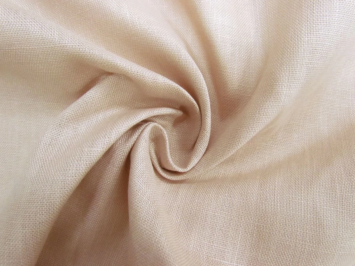 This linen fabric in a lovely pink toned beige colour is a comfortable adn breathable fabric. As this linen has a looser weave, it is only semi-opaque and a lining may be desired for extra opacity.